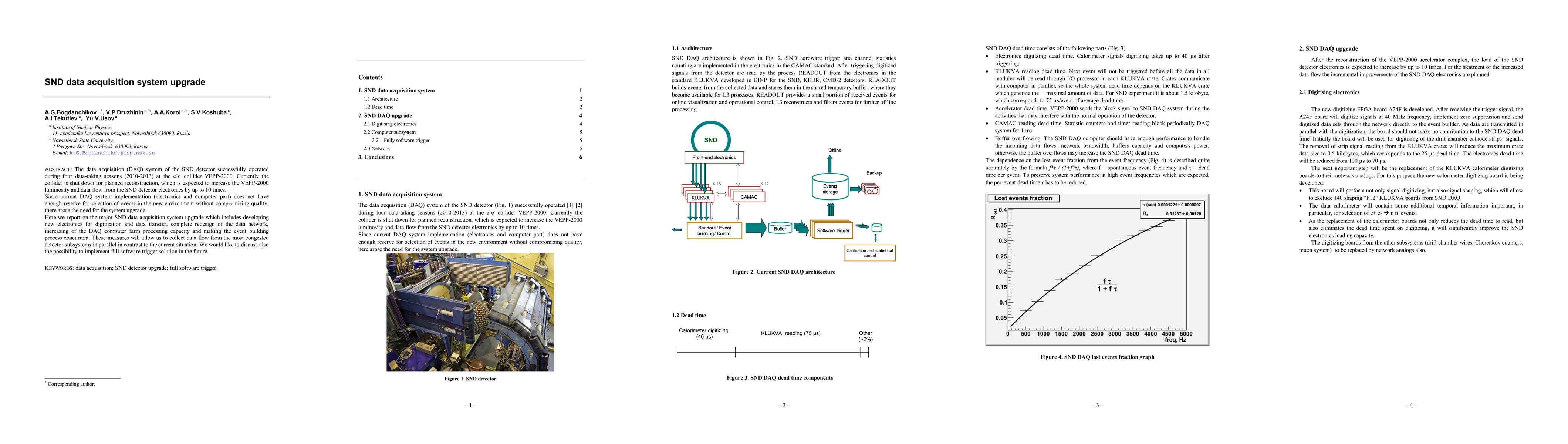 The SND detector's data acquisition system underwent a significant upgrade to handle increased data flow from the VEPP-2000 collider, including new electronics, a redesigned data network, and enhanced computer processing capacity. Future plans include implementing a full software trigger solution.
