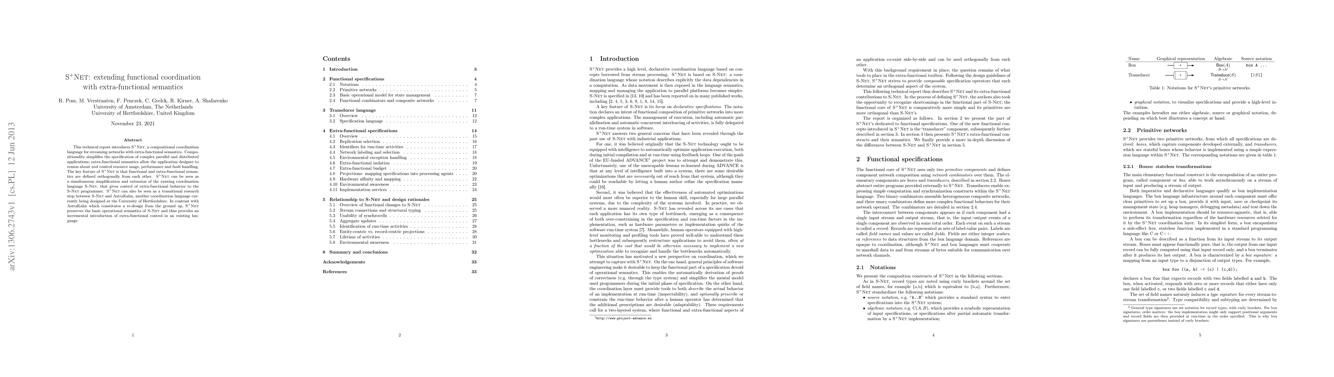 This technical report introduces S+Net, a compositional coordination language for streaming networks with extra-functional semantics. Compositionality simplifies the specification of complex parallel and distributed applications; extra-functional semantics allow the application designer to reason about and control resource usage, performance and fault handling. The key feature of S+Net is that functional and extra-functional semantics are defined orthogonally from each other. S+Net can be seen as a simultaneous simplification and extension of the existing coordination language S-Net, that gives control of extra-functional behavior to the S-Net programmer. S+Net can also be seen as a transitional research step between S-Net and AstraKahn, another coordination language currently being designed at the University of Hertfordshire. In contrast with AstraKahn which constitutes a re-design from the ground up, S+Net preserves the basic operational semantics of S-Net and thus provides an incremental introduction of extra-functional control in an existing language.