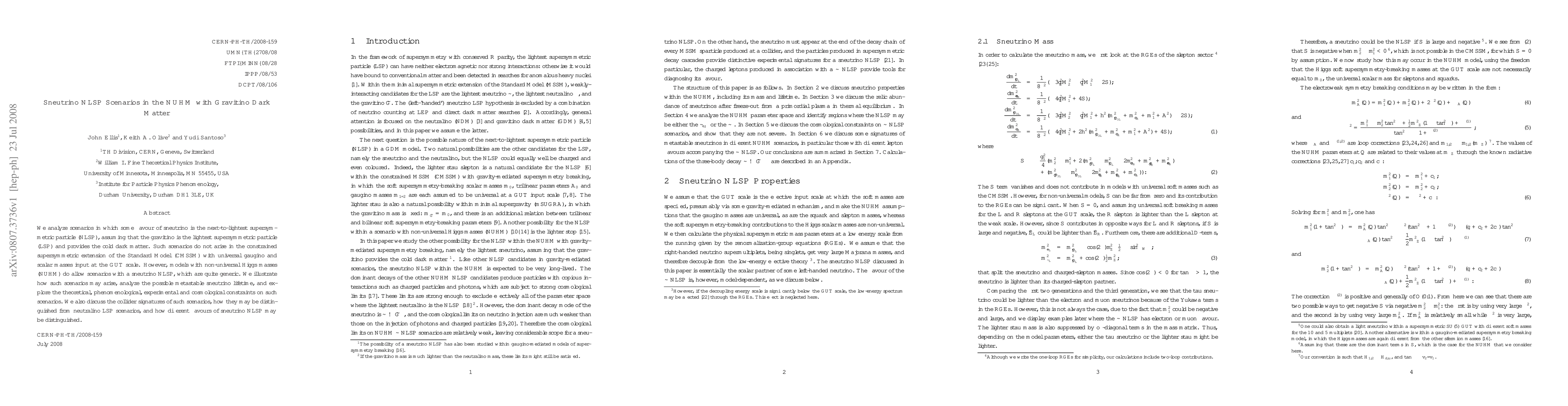 This paper explores scenarios where a sneutrino is the next-to-lightest supersymmetric particle (NLSP) in non-universal Higgs mass models (NUHM), with gravitinos as the lightest supersymmetric particle (LSP) and dark matter. It investigates the viability, constraints, and collider signatures of these scenarios.