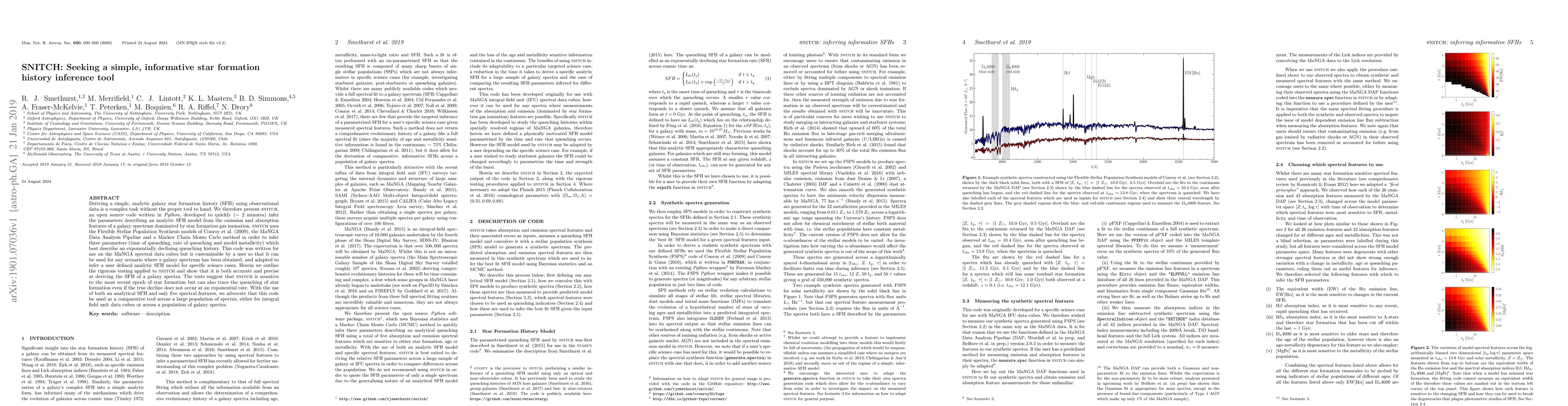 Deriving a simple, analytic galaxy star formation history (SFH) using observational data is a complex task without the proper tool to hand. We therefore present SNITCH, an open source code written in Python, developed to quickly (~2 minutes) infer the parameters describing an analytic SFH model from the emission and absorption features of a galaxy spectrum dominated by star formation gas ionisation. SNITCH uses the Flexible Stellar Population Synthesis models of Conroy et al. (2009), the MaNGA Data Analysis Pipeline and a Markov Chain Monte Carlo method in order to infer three parameters (time of quenching, rate of quenching and model metallicity) which best describe an exponentially declining quenching history. This code was written for use on the MaNGA spectral data cubes but is customisable by a user so that it can be used for any scenario where a galaxy spectrum has been obtained, and adapted to infer a user-defined analytic SFH model for specific science cases. Herein we outline the rigorous testing applied to SNITCH and show that it is both accurate and precise at deriving the SFH of a galaxy spectra. The tests suggest that SNITCH is sensitive to the most recent epoch of star formation but can also trace the quenching of star formation even if the true decline does not occur at an exponential rate. With the use of both an analytical SFH and only five spectral features, we advocate that this code be used as a comparative tool across a large population of spectra, either for integral field unit data cubes or across a population of galaxy spectra.