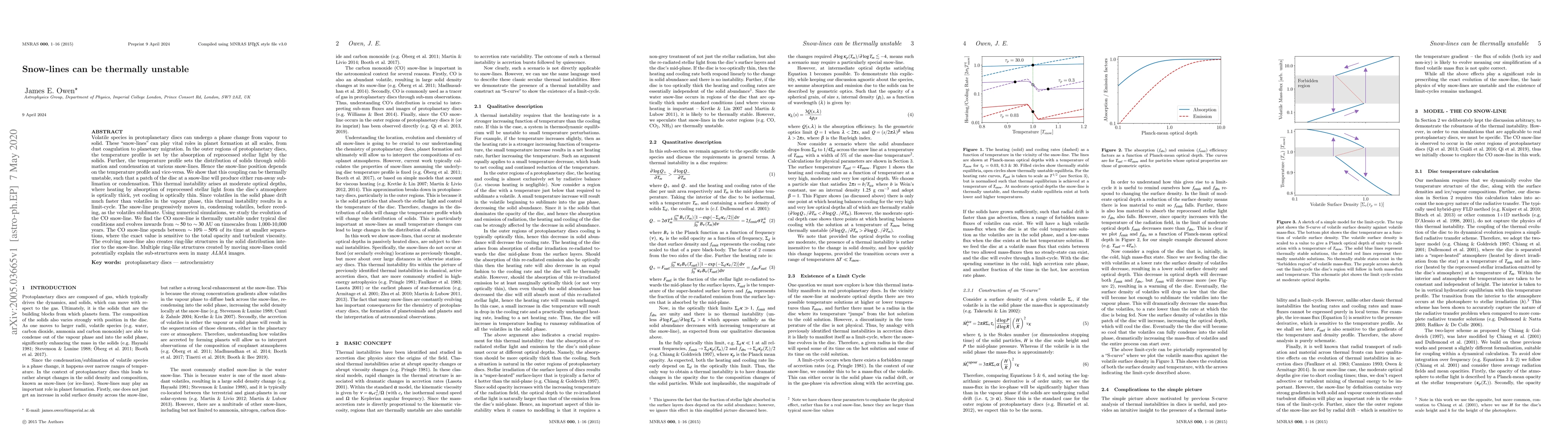 This paper demonstrates that snow-lines in protoplanetary discs can exhibit thermal instability, leading to oscillatory movement between condensation and sublimation. Numerical simulations reveal that the CO snow-line evolves inwards over thousands of years, creating ring-like structures that may explain observed sub-structures in protoplanetary discs.