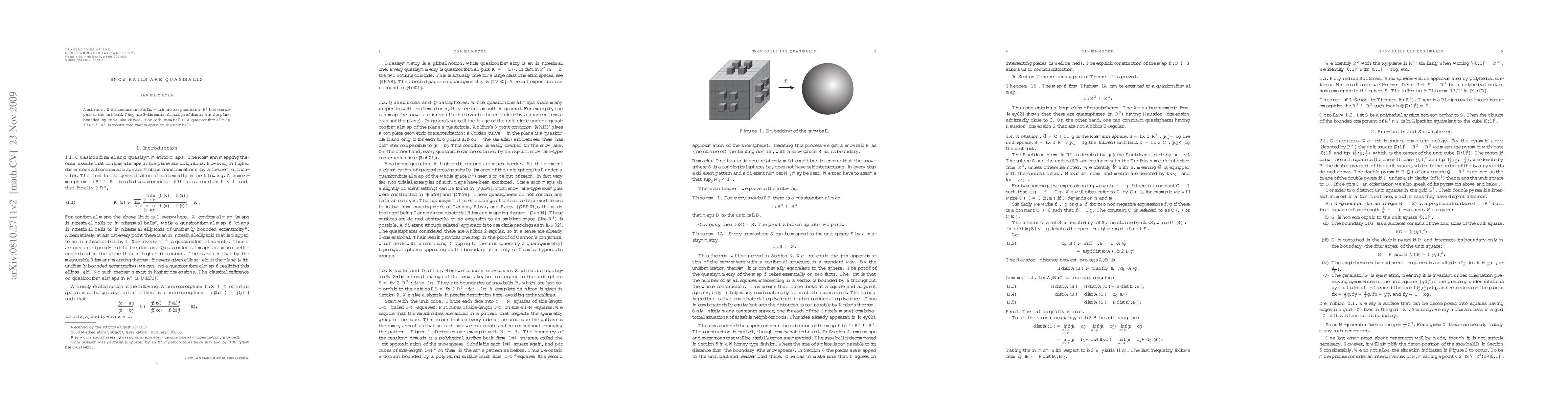 Researchers introduce snowballs as 3D analogs of domains bounded by snowflake curves, mapping them to the unit ball using quasiconformal maps.