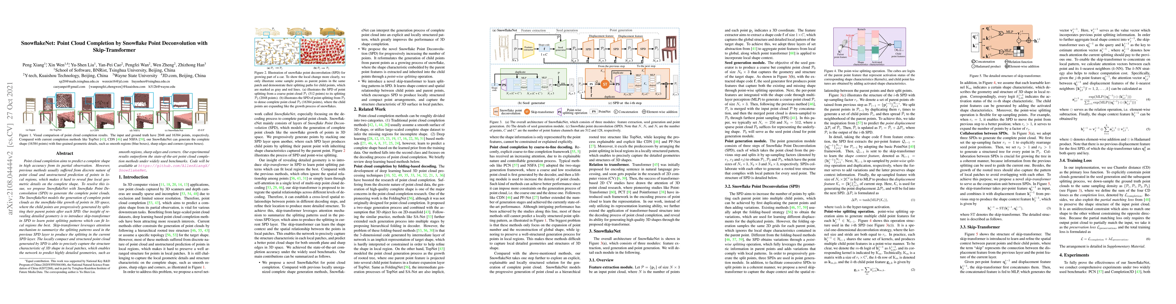 SnowflakeNet introduces Snowflake Point Deconvolution (SPD) with a skip-transformer to generate complete point clouds by simulating the snowflake-like growth of points. This approach captures fine local geometric details and outperforms existing methods in point cloud completion tasks.