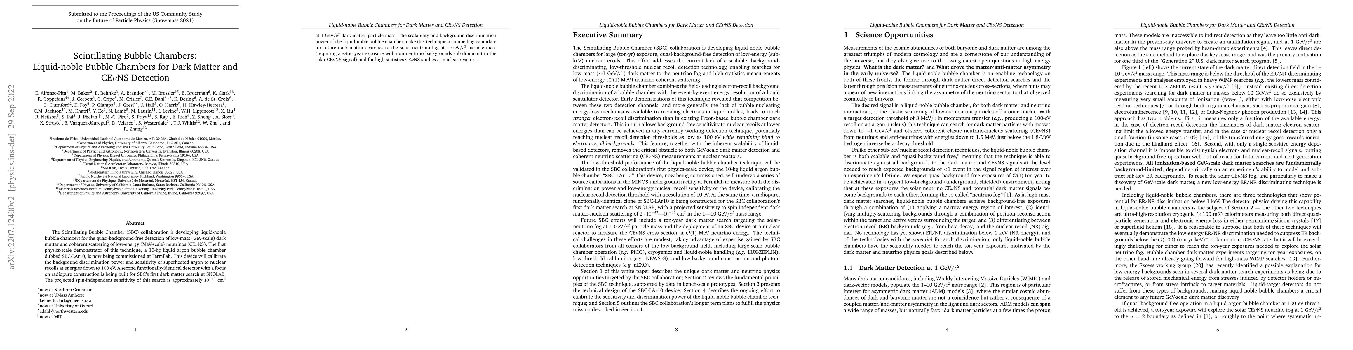 The Scintillating Bubble Chamber Collaboration is developing liquid-noble bubble chambers to detect low-mass dark matter and coherent neutrino scattering. The SBC-LAr10 demonstrator aims to calibrate sensitivity to nuclear recoils at Fermilab, with a scalable technique promising future dark matter searches and high-statistics neutrino studies.