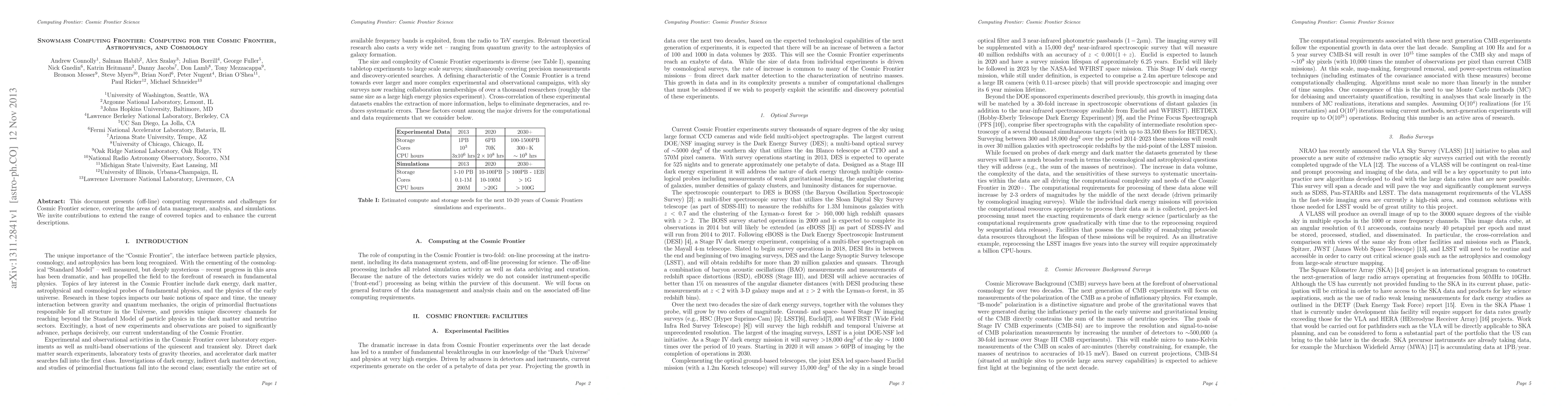This research paper outlines computing requirements for Cosmic Frontier science, covering data management, analysis, and simulations in astrophysics and cosmology. It invites contributions to extend the scope of covered topics and enhance current descriptions.