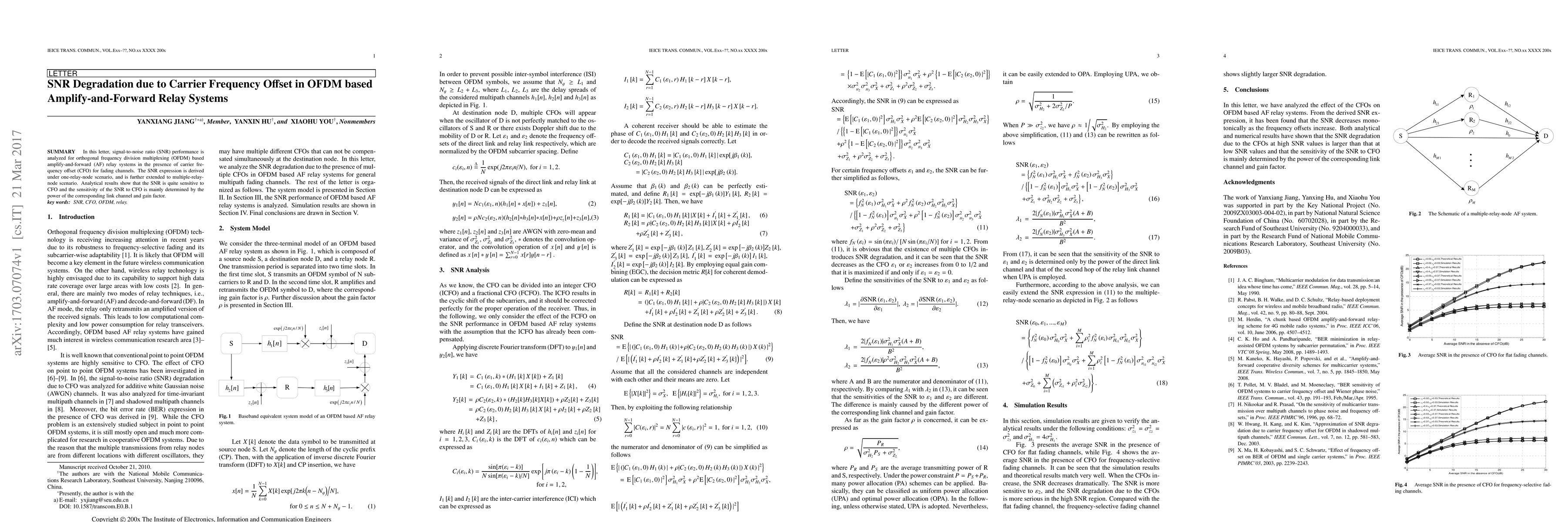 This paper analyzes the impact of carrier frequency offset (CFO) on the signal-to-noise ratio (SNR) in OFDM-based amplify-and-forward relay systems, deriving SNR expressions for both single and multiple relay nodes. It finds that SNR sensitivity to CFO is primarily influenced by the power of the link channel and the gain factor.