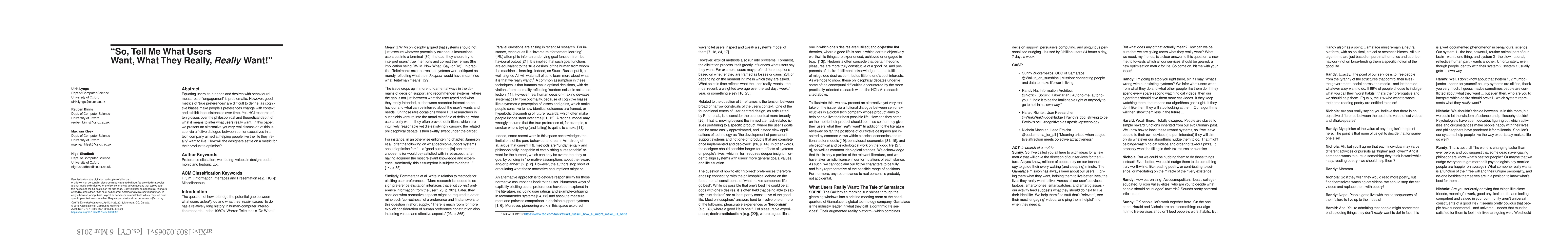 This paper critiques the difficulty of defining true user preferences due to cognitive biases and contextual inconsistencies, proposing a dialogue-based approach to explore deeper understanding in HCI research. The focus is on how designers can better settle on metrics for optimizing user engagement.