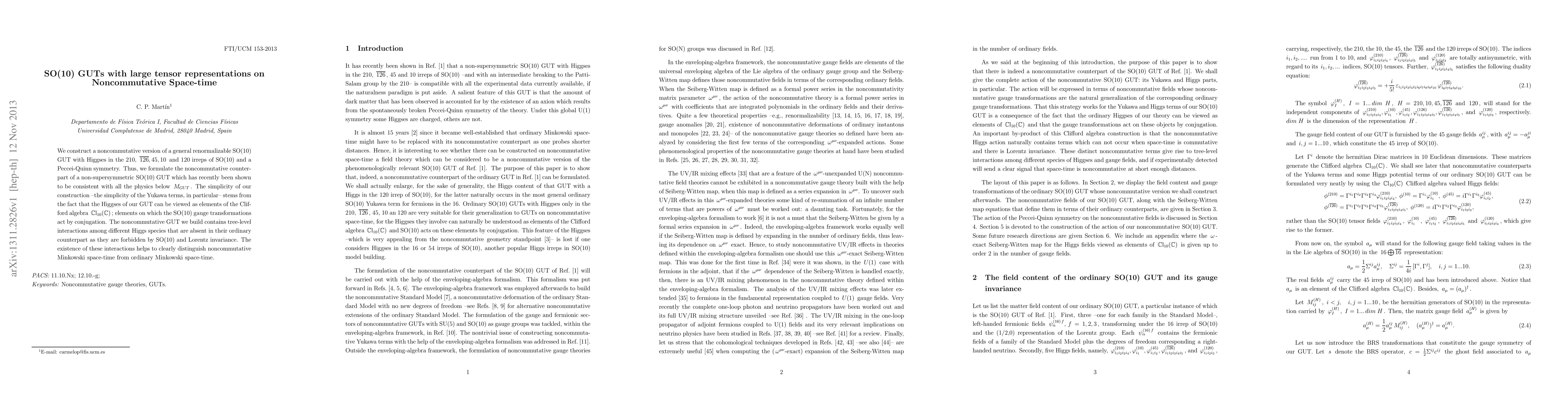We construct a noncommutative version of a general renormalizable SO(10) GUT with Higgses in the 210, $\overline{126}, 45, 10$ and 120 irreps of SO(10) and a Peccei-Quinn symmetry. Thus, we formulate the noncommutative counterpart of a non-supersymmetric SO(10) GUT which has recently been shown to be consistent with all the physics below $M_{GUT}$. The simplicity of our construction --the simplicity of the Yukawa terms, in particular-- stems from the fact that the Higgses of our GUT can be viewed as elements of the Clifford algebra $\mathbb{C}\rm{l}_{10}(\mathbb{C})$; elements on which the SO(10) gauge transformations act by conjugation. The noncommutative GUT we build contains tree-level interactions among different Higgs species that are absent in their ordinary counterpart as they are forbidden by SO(10) and Lorentz invariance. The existence of these interactions helps to clearly distinguish noncommutative Minkowski space-time from ordinary Minkowski space-time.