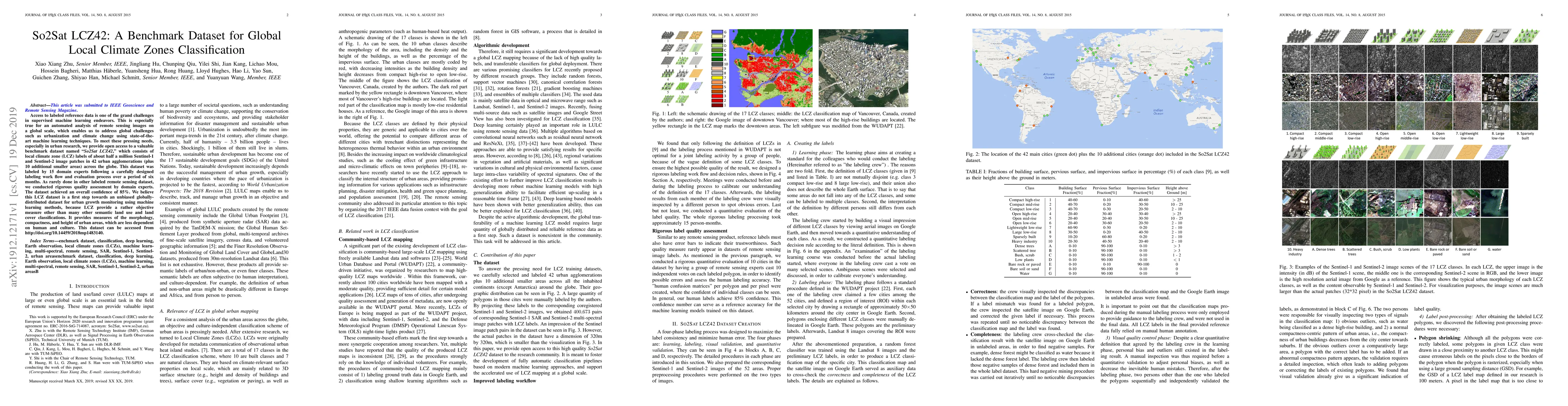 Access to labeled reference data is one of the grand challenges in supervised machine learning endeavors. This is especially true for an automated analysis of remote sensing images on a global scale, which enables us to address global challenges such as urbanization and climate change using state-of-the-art machine learning techniques. To meet these pressing needs, especially in urban research, we provide open access to a valuable benchmark dataset named "So2Sat LCZ42," which consists of local climate zone (LCZ) labels of about half a million Sentinel-1 and Sentinel-2 image patches in 42 urban agglomerations (plus 10 additional smaller areas) across the globe. This dataset was labeled by 15 domain experts following a carefully designed labeling work flow and evaluation process over a period of six months. As rarely done in other labeled remote sensing dataset, we conducted rigorous quality assessment by domain experts. The dataset achieved an overall confidence of 85%. We believe this LCZ dataset is a first step towards an unbiased globallydistributed dataset for urban growth monitoring using machine learning methods, because LCZ provide a rather objective measure other than many other semantic land use and land cover classifications. It provides measures of the morphology, compactness, and height of urban areas, which are less dependent on human and culture. This dataset can be accessed from http://doi.org/10.14459/2018mp1483140.