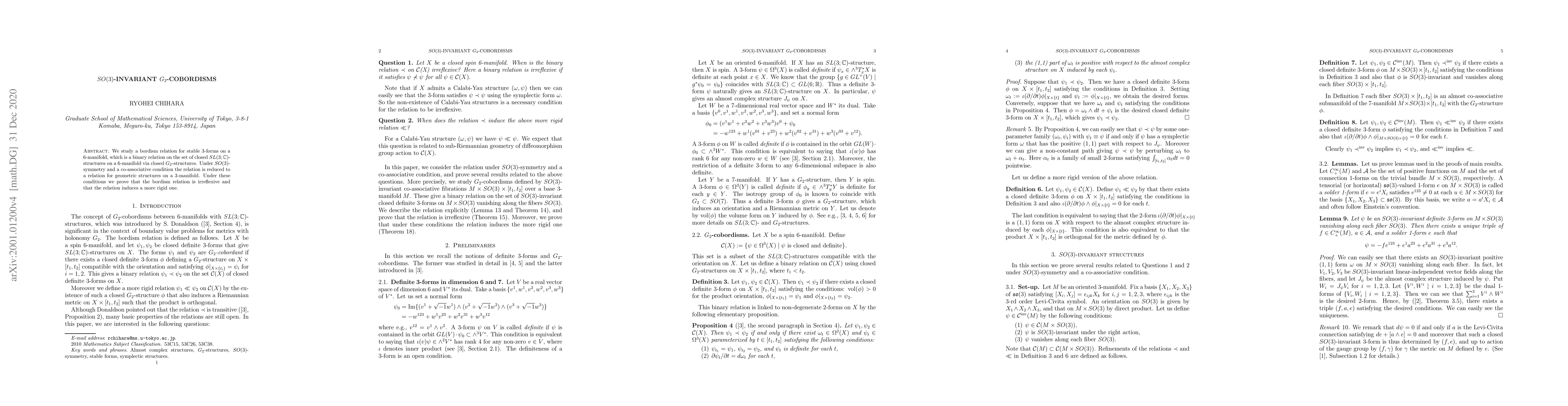 We study a bordism relation for stable 3-forms on a 6-manifold, which is a binary relation on the set of closed $SL(3;\mathbb{C})$-structures on a 6-manifold via closed $G_2$-structures. Under $SO(3)$-symmetry and a co-associative condition the relation is reduced to a relation for geometric structures on a 3-manifold. Under these conditions we prove that the bordism relation is irreflexive and that the relation induces a more rigid one.