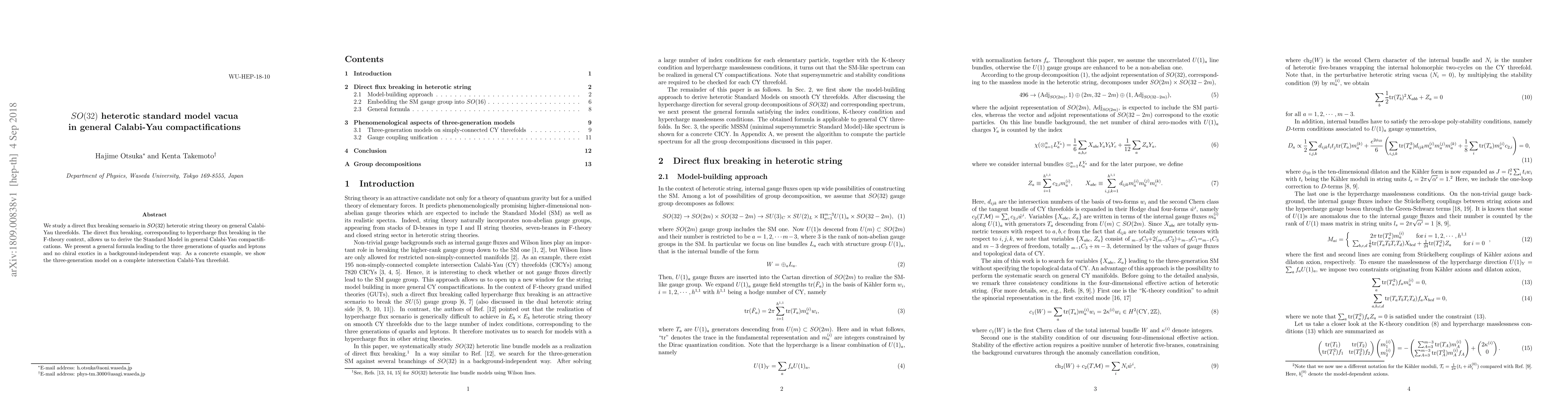 We study a direct flux breaking scenario in $SO(32)$ heterotic string theory on general Calabi-Yau threefolds. The direct flux breaking, corresponding to hypercharge flux breaking in the F-theory context, allows us to derive the Standard Model in general Calabi-Yau compactifications. We present a general formula leading to the three generations of quarks and leptons and no chiral exotics in a background-independent way. As a concrete example, we show the three-generation model on a complete intersection Calabi-Yau threefold.