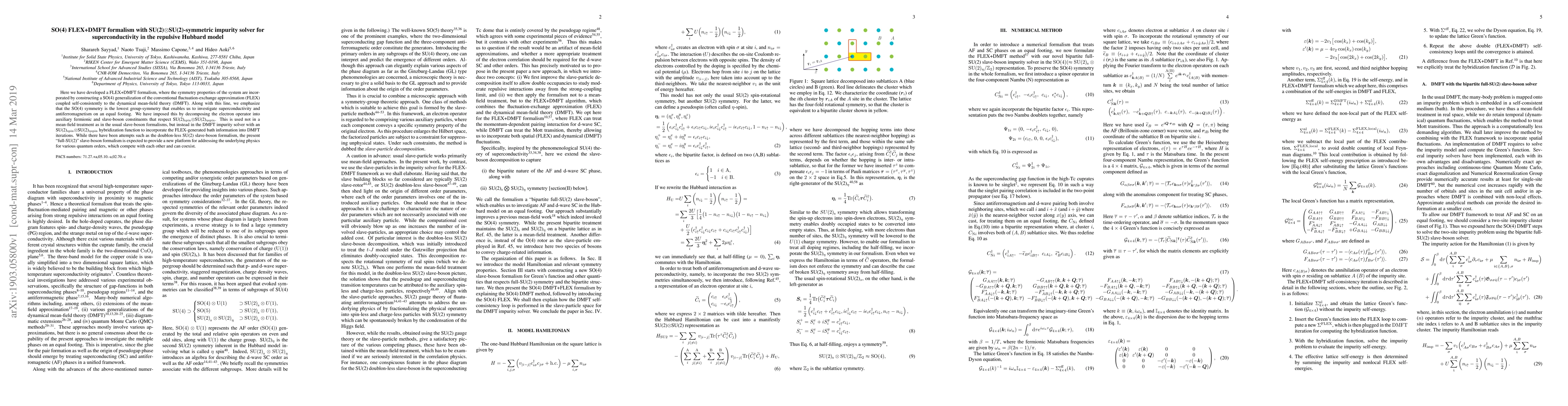 This paper develops a FLEX+DMFT formalism with SO(4) symmetry to study superconductivity in the repulsive Hubbard model, employing an SU(2) spin-SU(2) η spin slave-boson approach in the DMFT impurity solver to explore competing quantum orders. This new "full-SU(2)" slave-boson formalism aims to provide insights into the physics underlying superconductivity and antiferromagnetism.