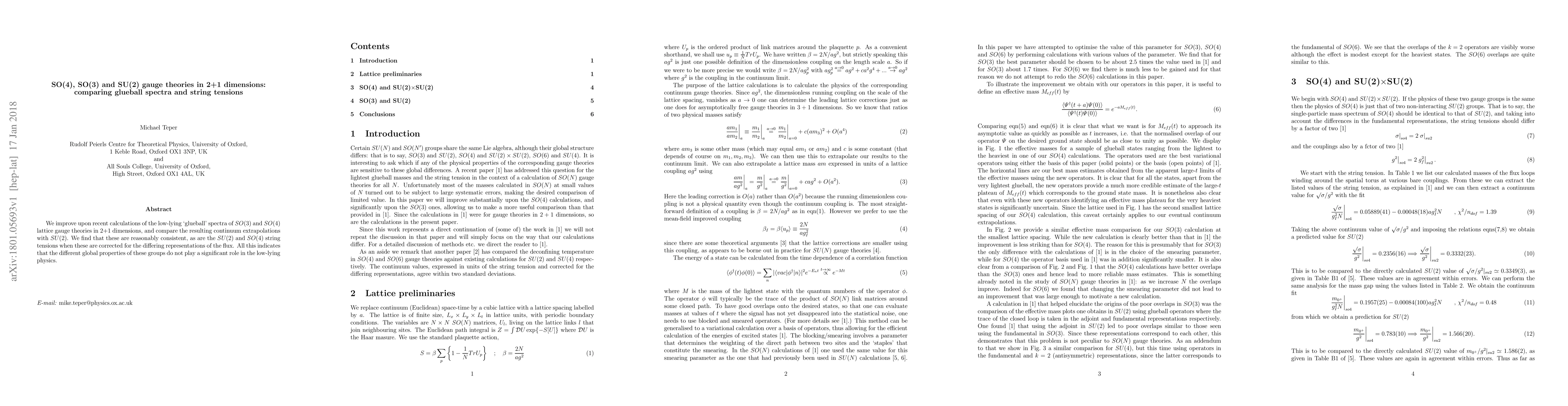 We improve upon recent calculations of the low-lying `glueball' spectra of SO(3) and SO(4) lattice gauge theories in 2+1 dimensions, and compare the resulting continuum extrapolations with SU(2). We find that these are reasonably consistent, as are the SU(2) and SO(4) string tensions when these are corrected for the differing representations of the flux. All this indicates that the different global properties of these groups do not play a significant role in the low-lying physics.