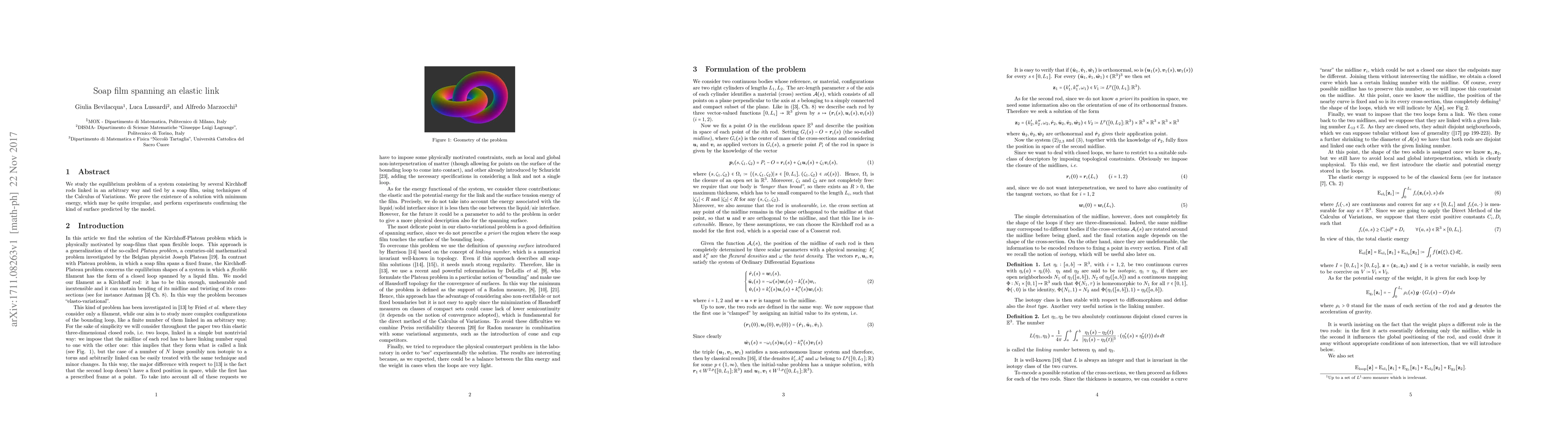 Researchers studied a system of linked rods tied by a soap film to find the equilibrium shape with minimum energy, proving its existence using Calculus of Variations techniques.