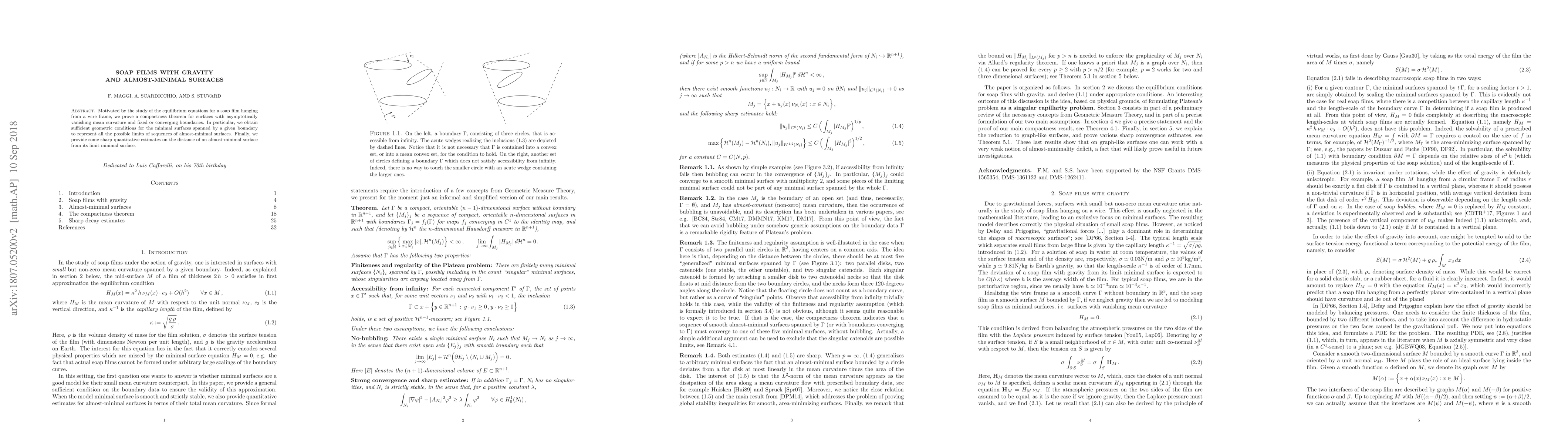 Motivated by the study of the equilibrium equations for a soap film hanging from a wire frame, we prove a compactness theorem for surfaces with asymptotically vanishing mean curvature and fixed or converging boundaries. In particular, we obtain sufficient geometric conditions for the minimal surfaces spanned by a given boundary to represent all the possible limits of sequences of almost-minimal surfaces. Finally, we provide some sharp quantitative estimates on the distance of an almost-minimal surface from its limit minimal surface.