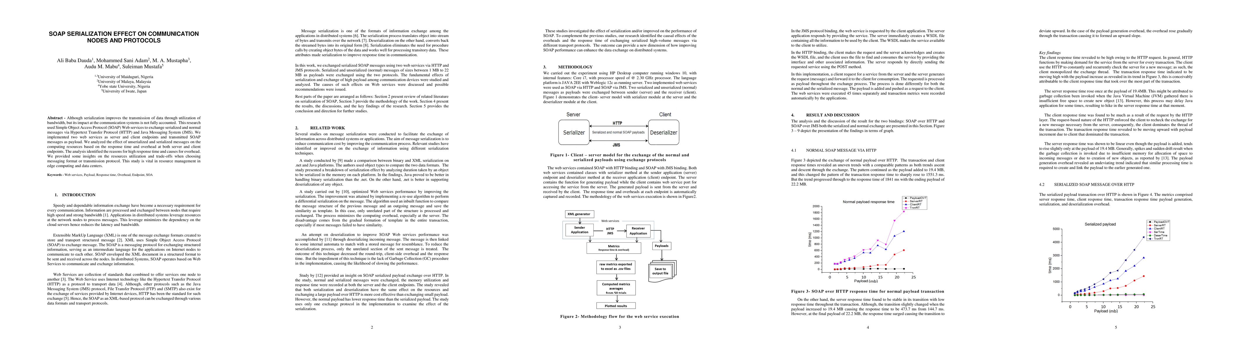 This research examines the impact of SOAP serialization on communication nodes and protocols using HTTP and JMS. Findings reveal that serialization affects computing resources, influencing response times and causing overhead at server and client endpoints. Insights are provided for resource management in edge computing and data centers.