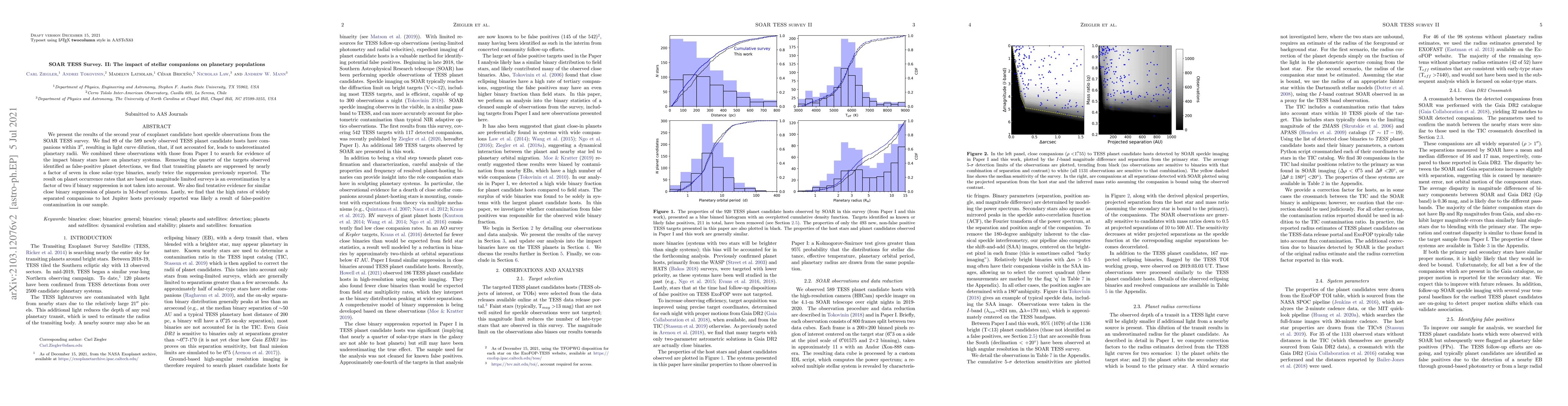 The SOAR TESS survey results show that 89 out of 589 TESS planet candidate hosts have stellar companions causing light curve dilution, leading to underestimated planetary radii. The study finds that close solar-type binary stars suppress transiting planets by nearly a factor of seven, indicating a two-fold overestimation of planet occurrence rates in magnitude-limited surveys without accounting for binary suppression.