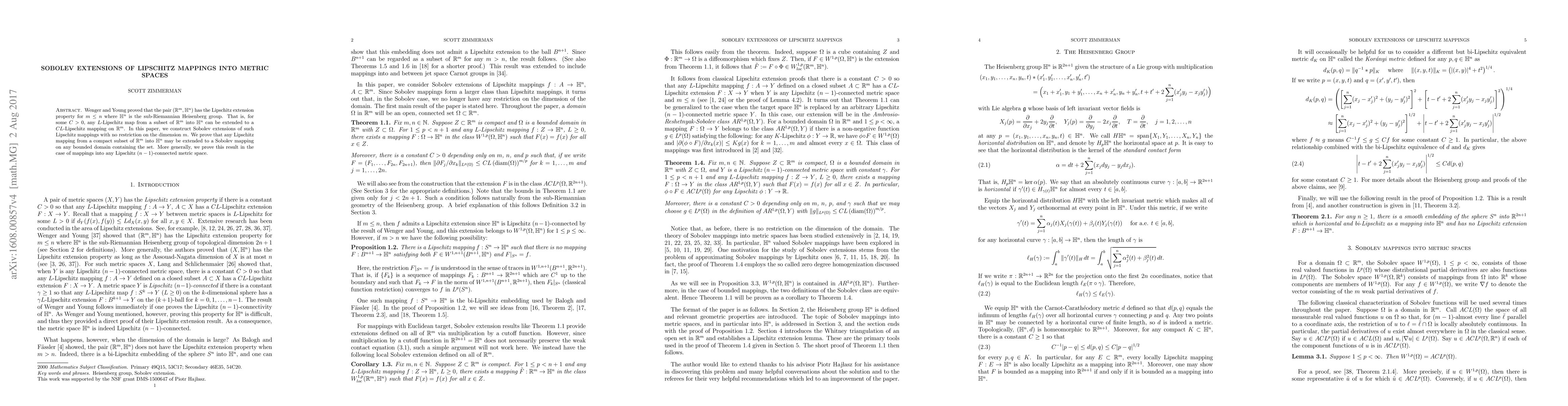 Wenger and Young proved that the pair $(\mathbb{R}^m,\mathbb{H}^n)$ has the Lipschitz extension property for $m \leq n$ where $\mathbb{H}^n$ is the sub-Riemannian Heisenberg group. That is, for some $C>0$, any $L$-Lipschitz map from a subset of $\mathbb{R}^m$ into $\mathbb{H}^n$ can be extended to a $CL$-Lipschitz mapping on $\mathbb{R}^m$. In this paper, we construct Sobolev extensions of such Lipschitz mappings with no restriction on the dimension $m$. We prove that any Lipschitz mapping from a compact subset of $\mathbb{R}^m$ into $\mathbb{H}^n$ may be extended to a Sobolev mapping on any bounded domain containing the set. More generally, we prove this result in the case of mappings into any Lipschitz $(n-1)$-connected metric space.