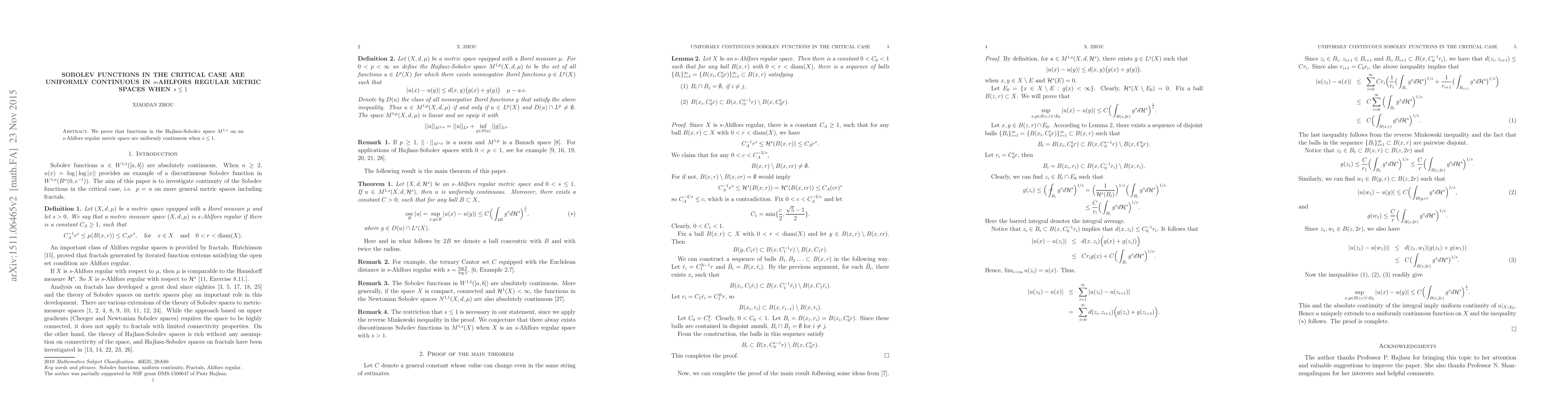 We prove that functions in the Haj\l{}asz-Sobolev space $M^{1,s}$ on an $s$-Ahlfors regular metric space are uniformly continuous when $s\le 1$.