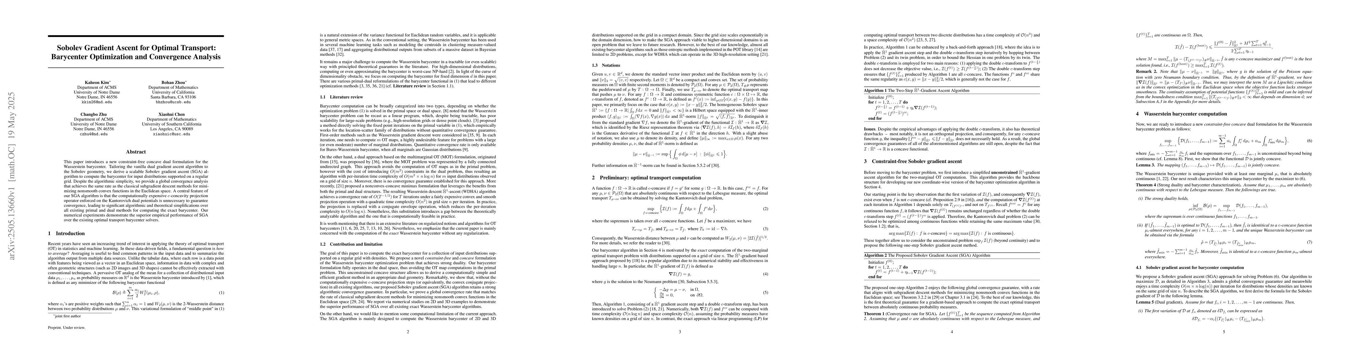 The paper introduces a Sobolev gradient ascent (SGA) algorithm tailored to the Sobolev geometry for computing the Wasserstein barycenter, simplifying existing methods by eliminating the need for the computationally expensive $c$-concavity projection operator.