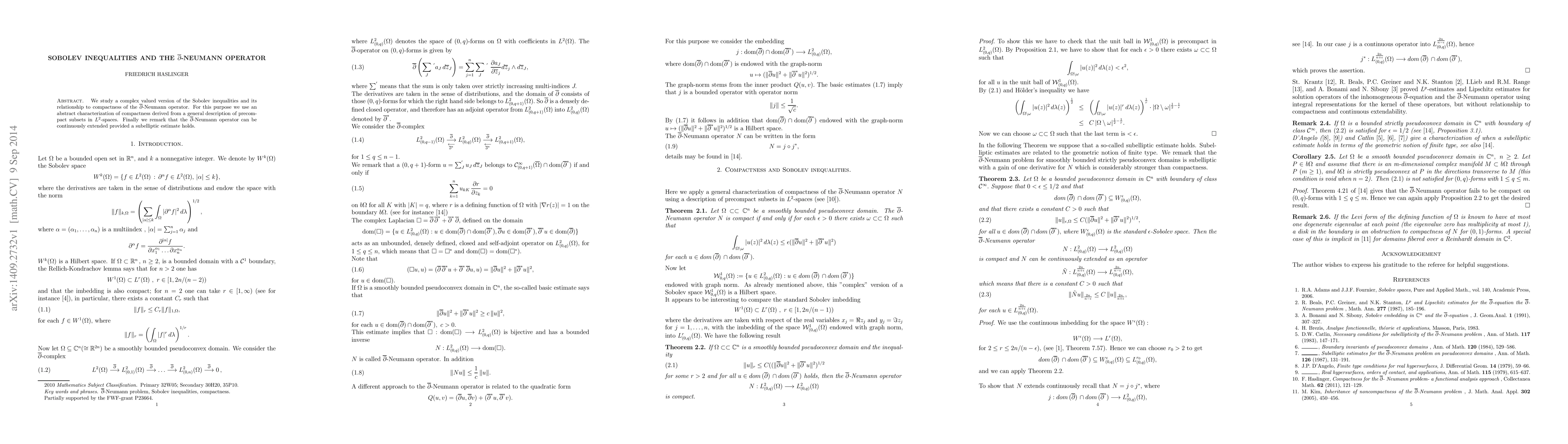 We study a complex valued version of the Sobolev inequalities and its relationship to compactness of the d-bar-Neumann operator. For this purpose we use an abstract characterization of compactness derived from a general description of precompact subsets in L^2-spaces. Finally we remark that the d-bar-Neumann operator can be continuously extended provided a subelliptic estimate holds.