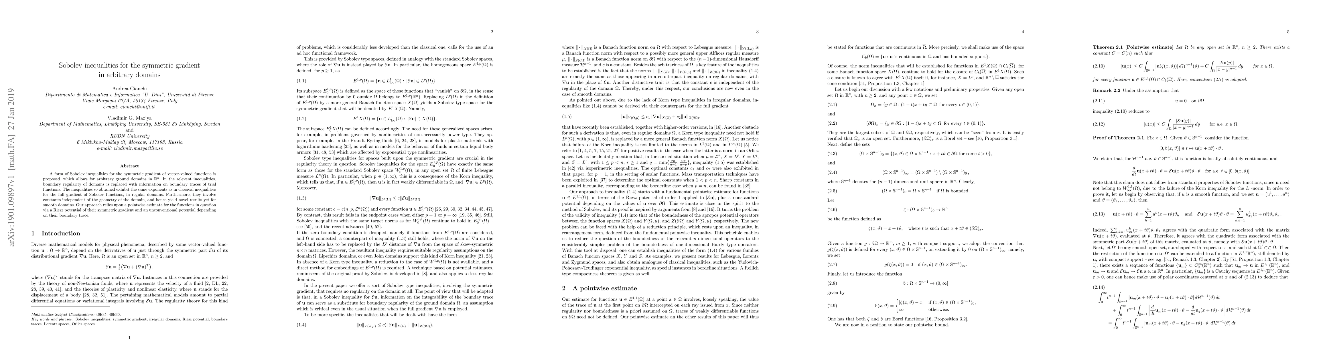 Researchers propose a new form of Sobolev inequalities for the symmetric gradient in arbitrary domains, replacing boundary regularity with information on boundary traces, yielding novel results for smooth domains.