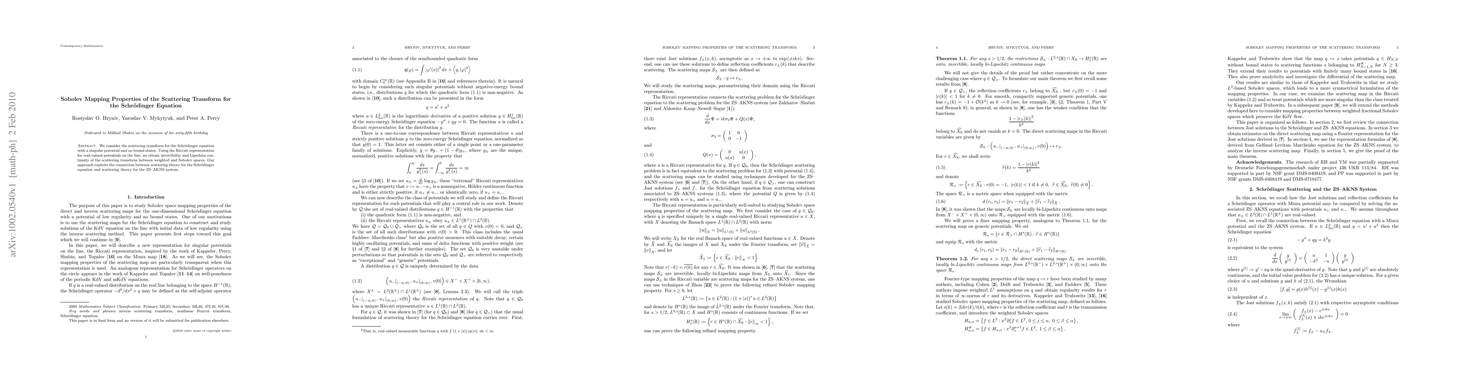 This paper investigates the scattering transform for the Schrödinger equation with a singular potential, proving its invertibility and Lipschitz continuity between weighted and Sobolev spaces. The study leverages the Riccati representation and connects scattering theory for the Schrödinger equation to that of the ZS-AKNS system.