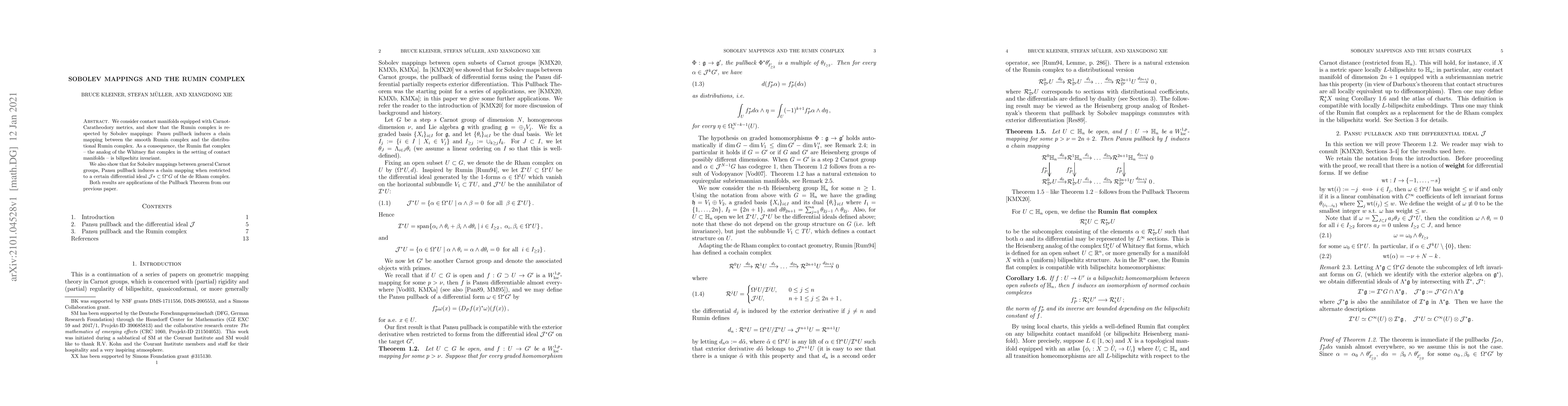 We consider contact manifolds equipped with Carnot-Caratheodory metrics, and show that the Rumin complex is respected by Sobolev mappings: Pansu pullback induces a chain mapping between the smooth Rumin complex and the distributional Rumin complex. As a consequence, the Rumin flat complex -- the analog of the Whitney flat complex in the setting of contact manifolds -- is bilipschitz invariant. We also show that for Sobolev mappings between general Carnot groups, Pansu pullback induces a chain mapping when restricted to a certain differential ideal of the de Rham complex. Both results are applications of the Pullback Theorem from our previous paper.