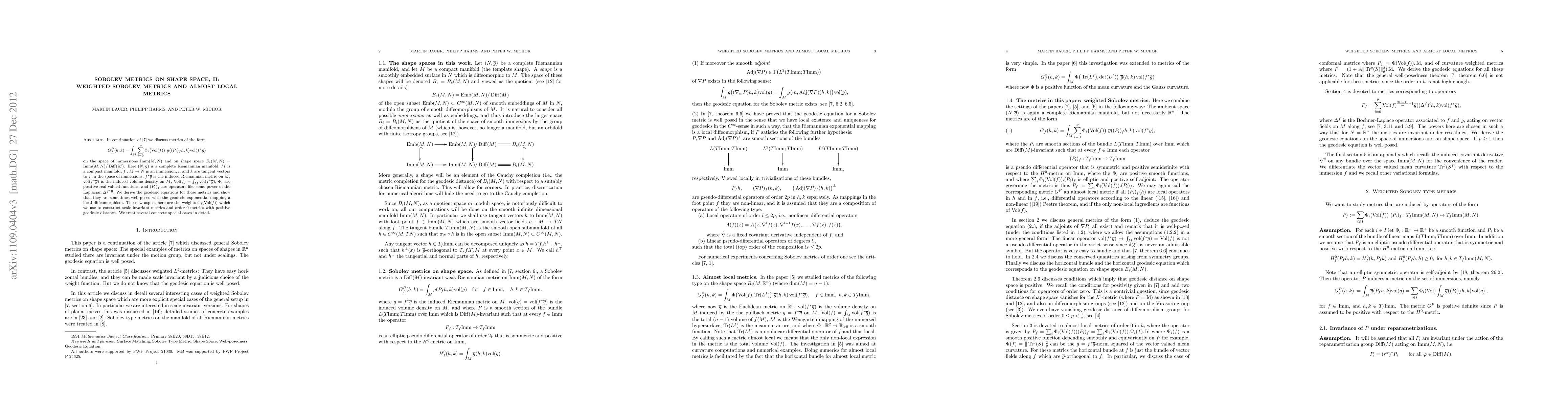 In continuation of [3] we discuss metrics of the form $$ G^P_f(h,k)=\int_M \sum_{i=0}^p\Phi_i(\Vol(f)) \g((P_i)_fh,k) \vol(f^*\g) $$ on the space of immersions $\Imm(M,N)$ and on shape space $B_i(M,N)=\Imm(M,N)/\on{Diff}(M)$. Here $(N,\g)$ is a complete Riemannian manifold, $M$ is a compact manifold, $f:M\to N$ is an immersion, $h$ and $k$ are tangent vectors to $f$ in the space of immersions, $f^*\g$ is the induced Riemannian metric on $M$, $\vol(f^*\g)$ is the induced volume density on $M$, $\Vol(f)=\int_M\vol(f^*\g)$, $\Phi_i$ are positive real-valued functions, and $(P_i)_f$ are operators like some power of the Laplacian $\Delta^{f^*\g}$. We derive the geodesic equations for these metrics and show that they are sometimes well-posed with the geodesic exponential mapping a local diffeomorphism. The new aspect here are the weights $\Ph_i(\Vol(f))$ which we use to construct scale invariant metrics and order 0 metrics with positive geodesic distance. We treat several concrete special cases in detail.
