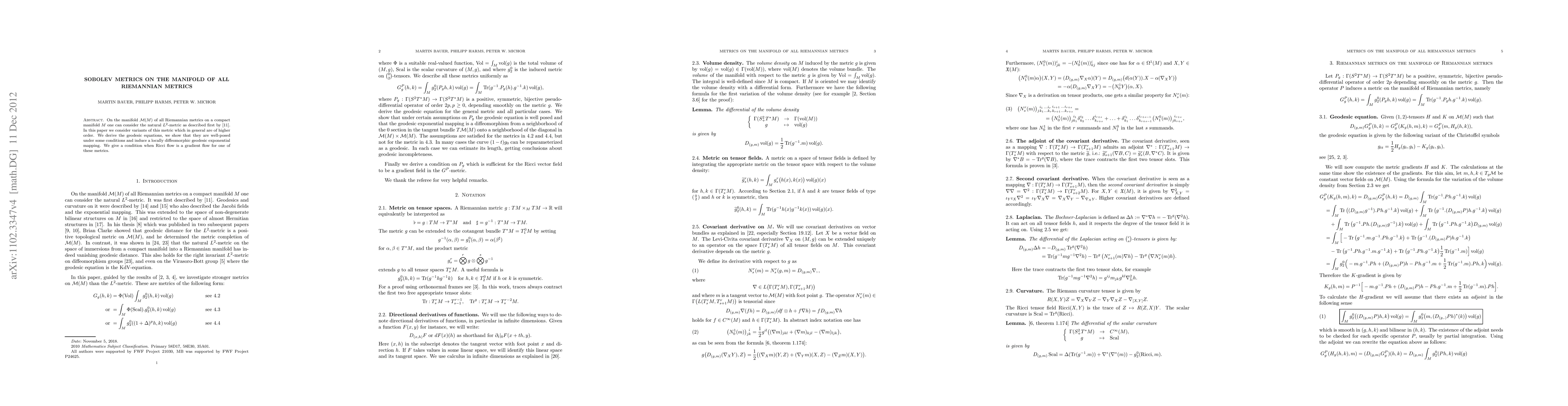 This paper explores higher-order Sobolev metrics on the manifold $\Met(M)$ of Riemannian metrics on a compact manifold $M$, deriving geodesic equations and demonstrating their well-posedness under certain conditions. It also establishes when Ricci flow acts as a gradient flow for these metrics.
