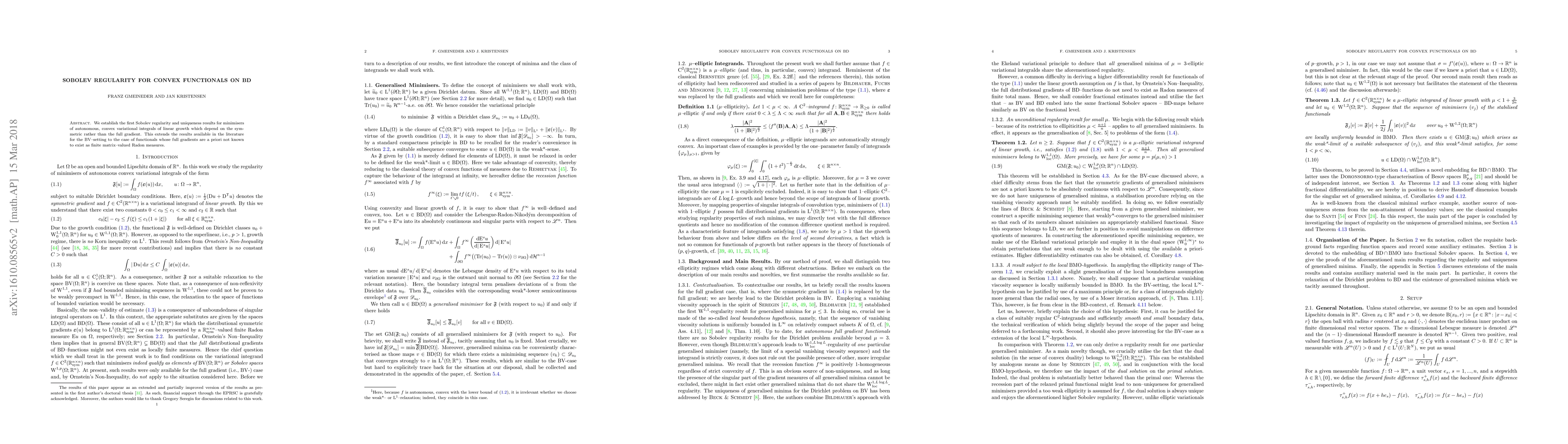 We study Sobolev regularity results for minimisers of autonomous, convex variational of linear growth which depend on the symmetric gradient rather than the full gradient. This extends the results available in the literature for the BV-setting to the case of functionals whose full gradients are a priori not known to exist as matrix-valued Radon measures.