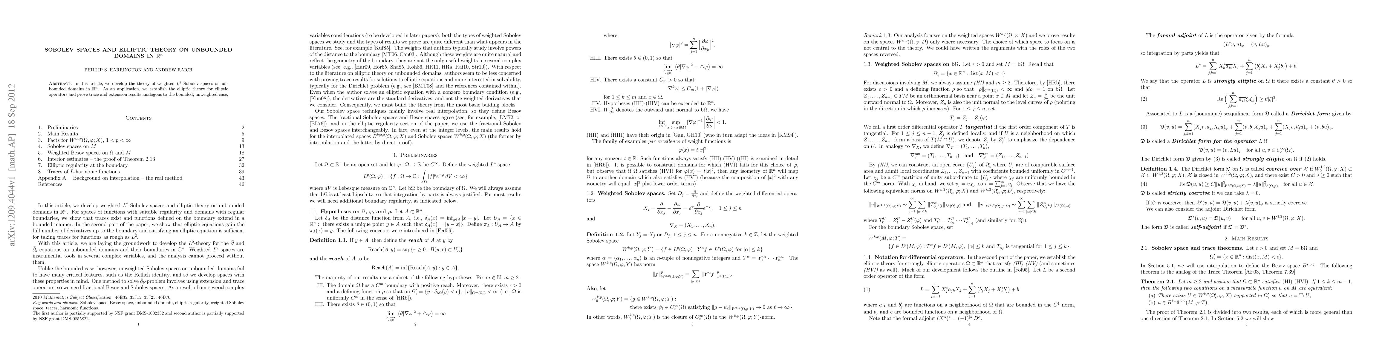 This paper develops the theory of weighted $L^2$ Sobolev spaces on unbounded domains in $\mathbb R^n$ and applies it to establish elliptic theory for elliptic operators, proving trace and extension results similar to those in the bounded, unweighted case.