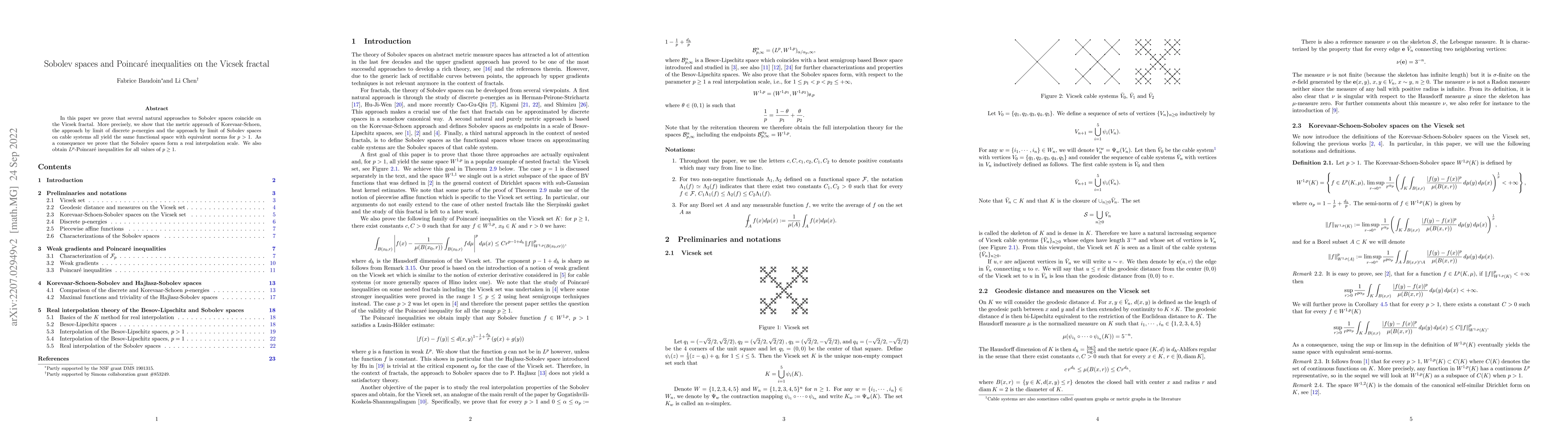 This paper demonstrates that various methods for defining Sobolev spaces on the Vicsek fractal converge to the same functional space with equivalent norms for $p>1$. Additionally, it establishes $L^p$-Poincaré inequalities for all $p \ge 1$.