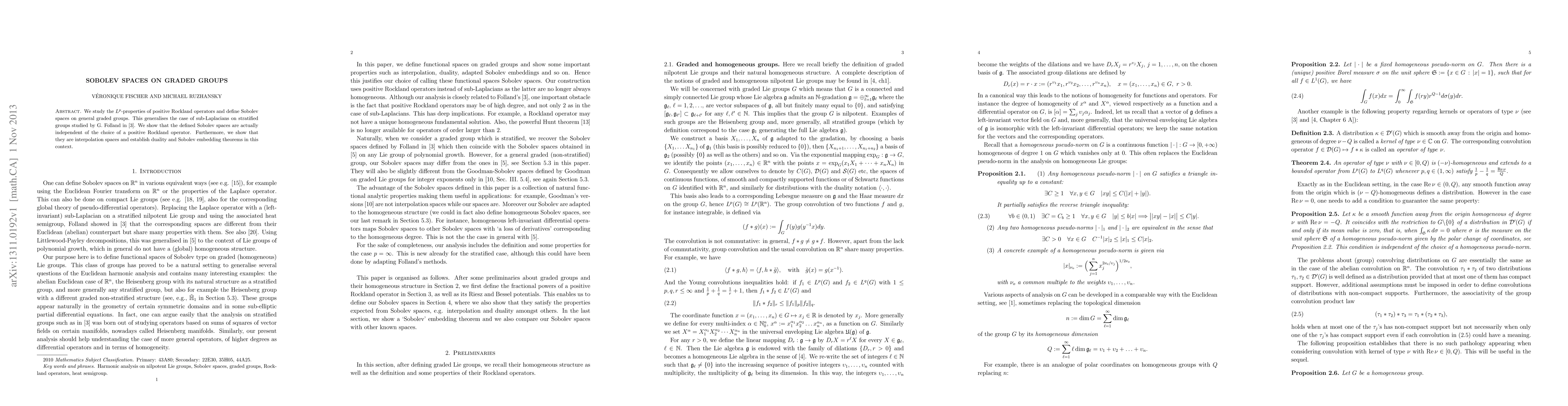 This paper introduces Sobolev spaces on graded groups, generalizing sub-Laplacians to positive Rockland operators, and establishes duality and embedding theorems in this context.