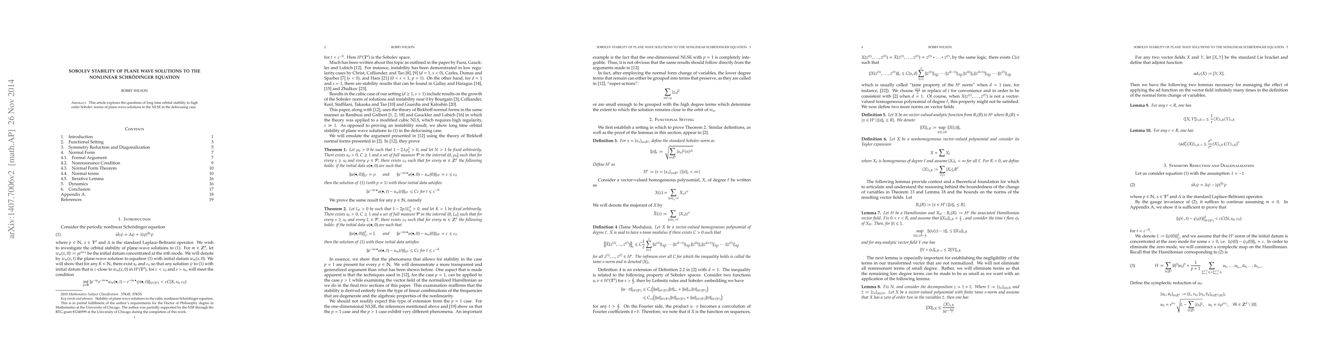 This article explores the questions of long time orbital stability in high order Sobolev norms of plane wave solutions to the NLSE in the defocusing case.