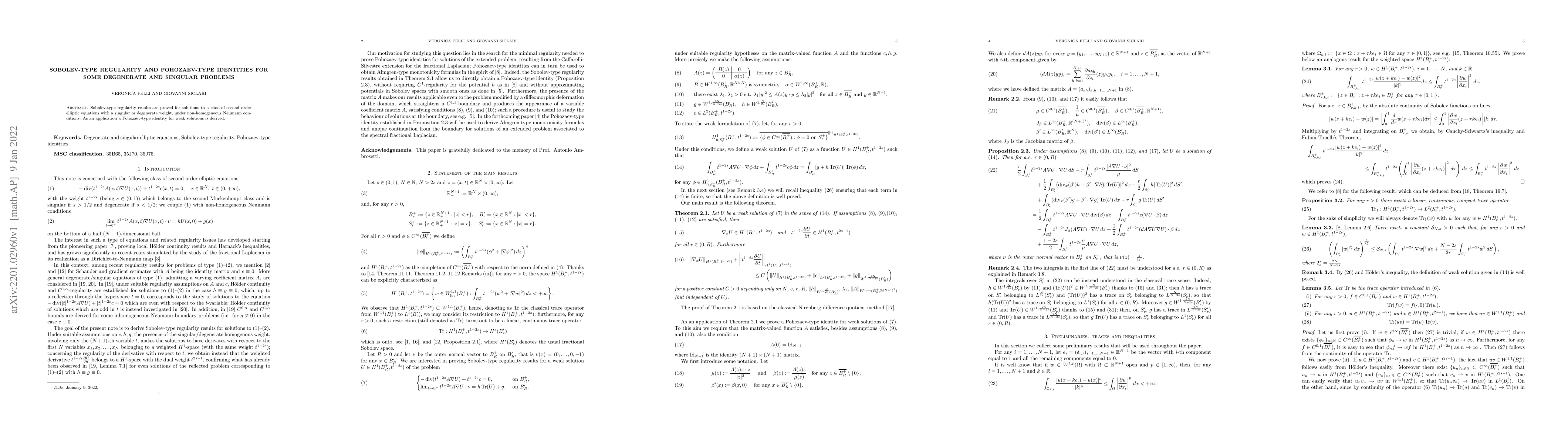 The paper establishes Sobolev-type regularity estimates and derives Pohozaev-type identities for elliptic problems with singular or degenerate weights, extending existing regularity theory.