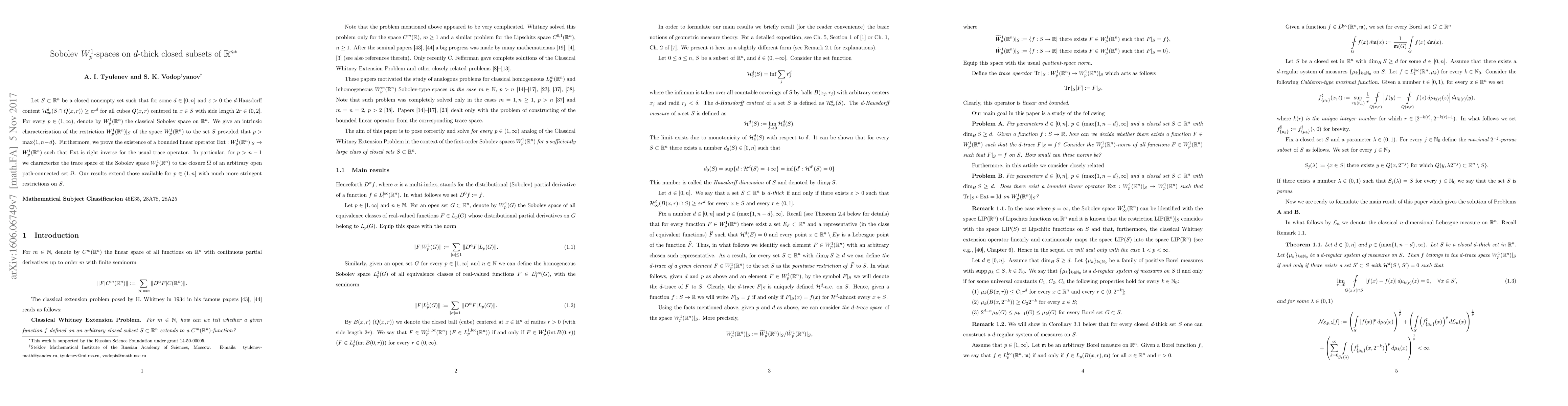This paper provides an intrinsic characterization of the Sobolev space $W_{p}^{1}(\mathbb{R}^{n})$ restricted to $d$-thick closed subsets $S$ of $\mathbb{R}^{n}$, where $p > \max\{1,n-d\}$. It also establishes the existence of a bounded linear extension operator for these spaces.