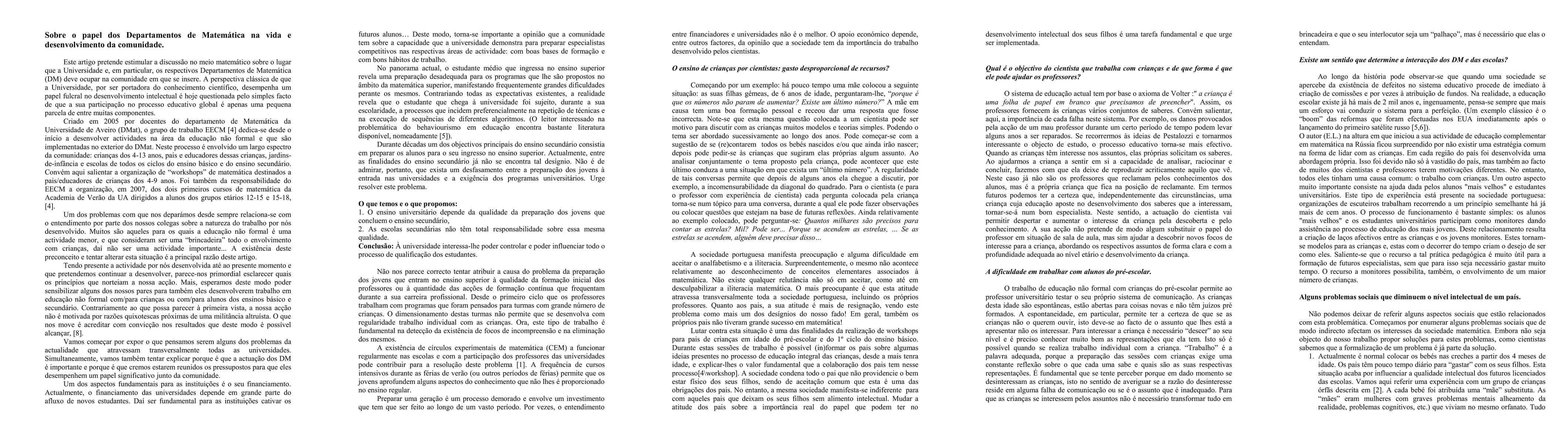 The objective of this article is to stimulate discussions in mathematical society about the role of mathematical departments in the life of the community. University community is the center of knowledge and promotes the intellectual development. However, this is questioned today because of its reduced participation on the global learning process as there are many other components.