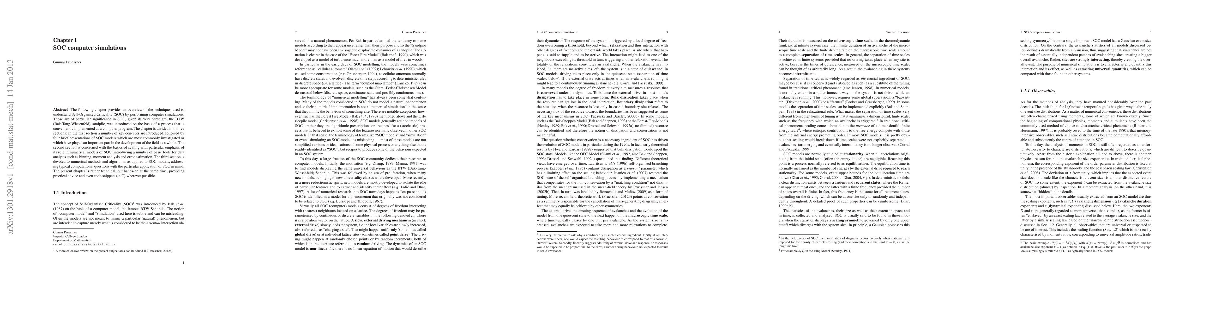 This paper provides an overview of techniques used to simulate Self-Organised Criticality (SOC) through computer simulations, with a focus on the Bak-Tang-Wiesenfeld sandpile model. The research covers key concepts, numerical methods, and algorithms for analyzing SOC models, offering practical advice for hands-on experimentation.