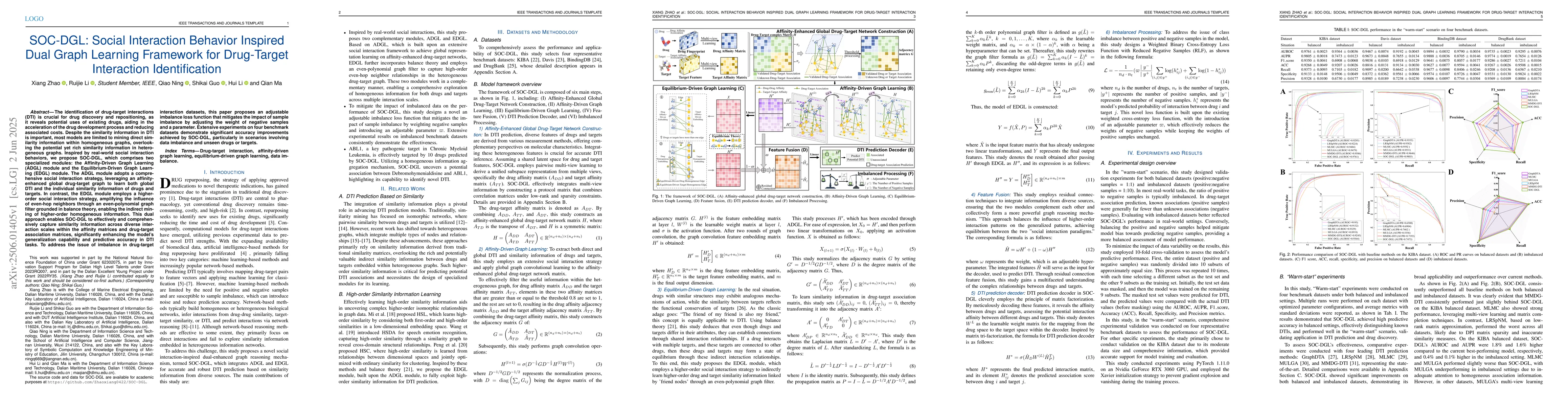 The paper introduces SOC-DGL, a novel method inspired by social interactions that enhances drug-target interaction prediction by capturing complex similarity information within heterogeneous graphs. It significantly improves accuracy, especially in imbalanced datasets and when predicting interactions involving new drugs or targets.