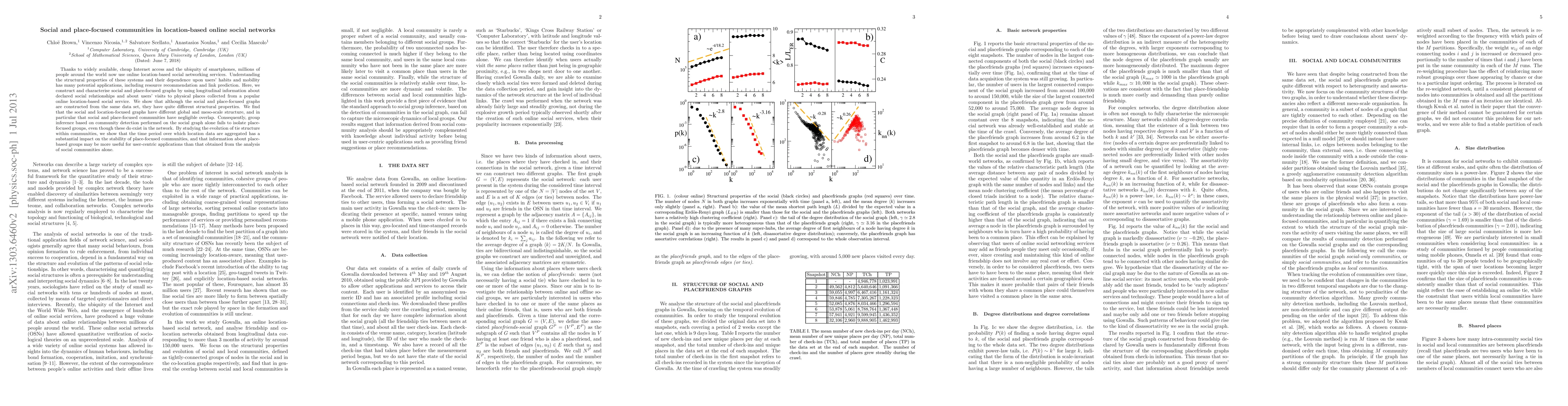 This paper explores the structural properties of social and place-focused graphs in location-based online social networks, revealing that these graphs have distinct global and meso-scale structures with minimal overlap. It highlights that community detection based on social graphs alone fails to identify place-focused groups, underscoring the importance of place-based information for user-centric applications.