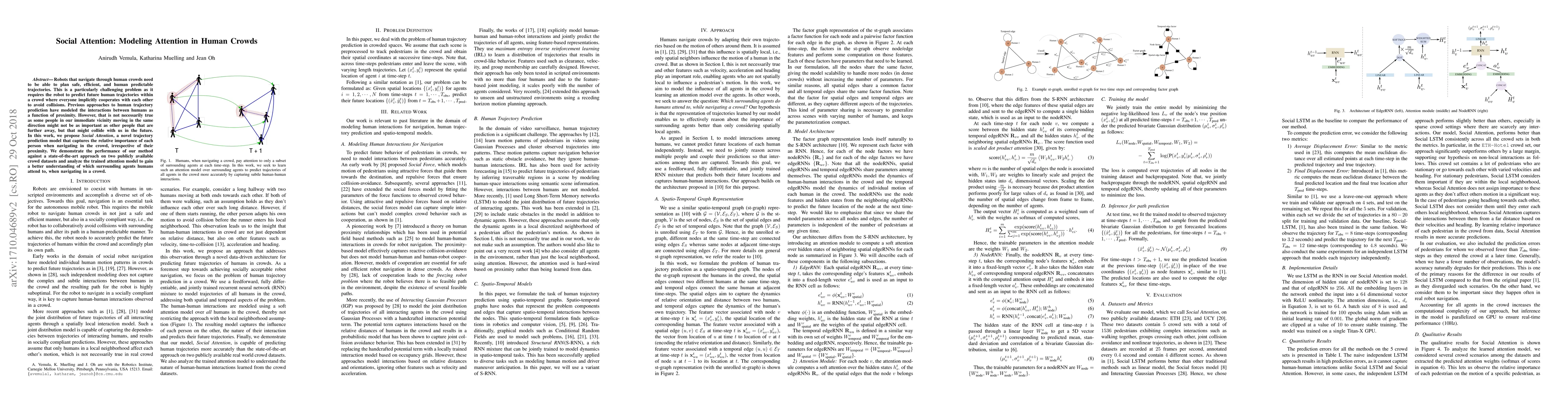 Researchers propose a new model called Social Attention to predict human trajectories in crowds, taking into account the relative importance of each person regardless of proximity.