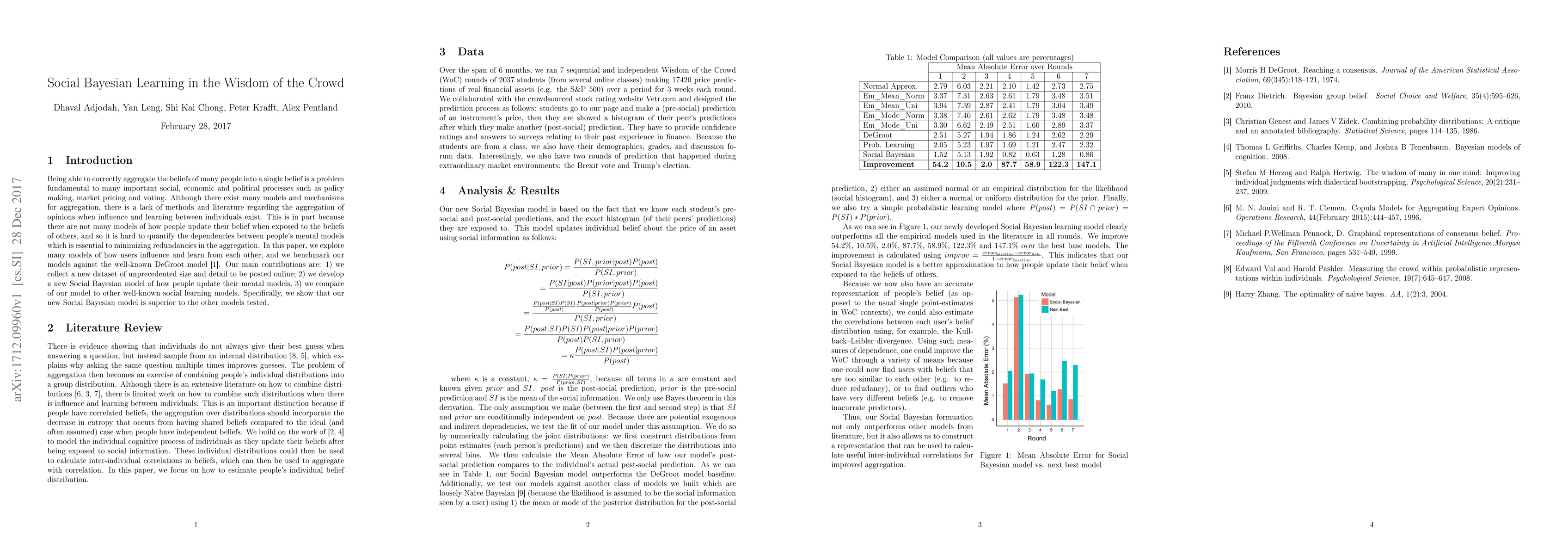This paper introduces a new Social Bayesian model for aggregating individual beliefs, addressing the gap in models that account for influence and learning between individuals. It presents a large, detailed dataset and demonstrates the superiority of the proposed model over existing ones like the DeGroot model.