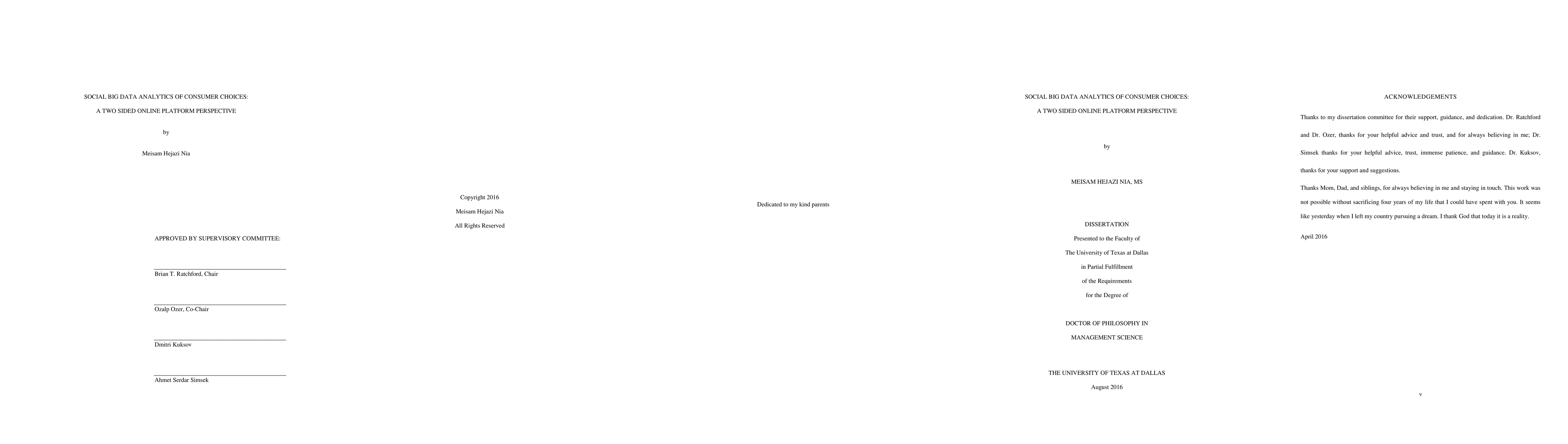 This dissertation examines three distinct big data analytics problems related to the social aspects of consumers' choices. The main goal of this line of research is to help two sided platform firms to target their marketing policies given the great heterogeneity among their customers. In three essays, I combined structural modeling and machine learning approaches to first understand customers' responses to intrinsic and extrinsic factors, using unique data sets I scraped from the web, and then explore methods to optimize two sided platforms' firms' reactions accordingly. The first essay examines "social learning" in the mobile app store context, controlling for intrinsic value of hedonic and utilitarian mobile apps, price, advertising, and number of options available. The second essay investigates bidders' anticipated winner and loser regret in the context of the eBay online auction platform. Using a large data set from eBay and empirical Bayesian estimation method, I quantify the bidders' anticipation of regret in various product categories, and investigate the role of experience in explaining the bidders' regret and learning behaviors. The third essay investigates the effects of Gamification incentive mechanisms in an online platform for user generated content. I use an ensemble method over LDA, mixed normal and k-mean clustering methods to segment users into competitors, collaborators, achievers, explorers and uninterested users. These findings help the Gamification platform to target its users. The simulation counterfactual analysis suggests that a two sided platform can increase the number of user contributions, by making earning badges more difficult.