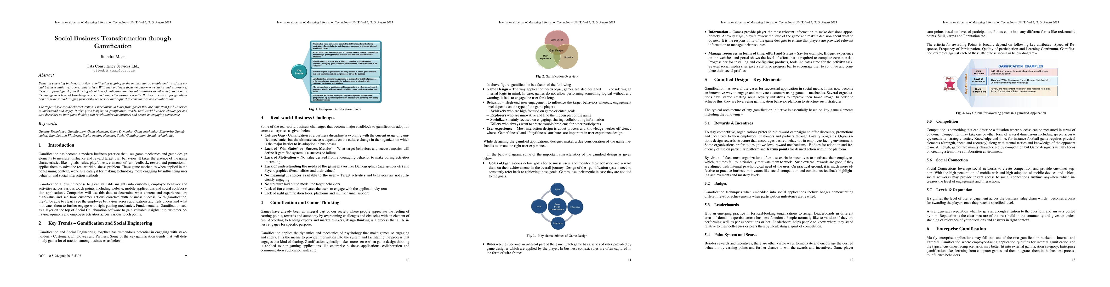 This paper explores how gamification is transforming social business practices by enhancing employee engagement and improving business outcomes. It examines the mechanisms and trends of gamification, addressing real-world challenges and demonstrating how game-based thinking can revolutionize business operations.