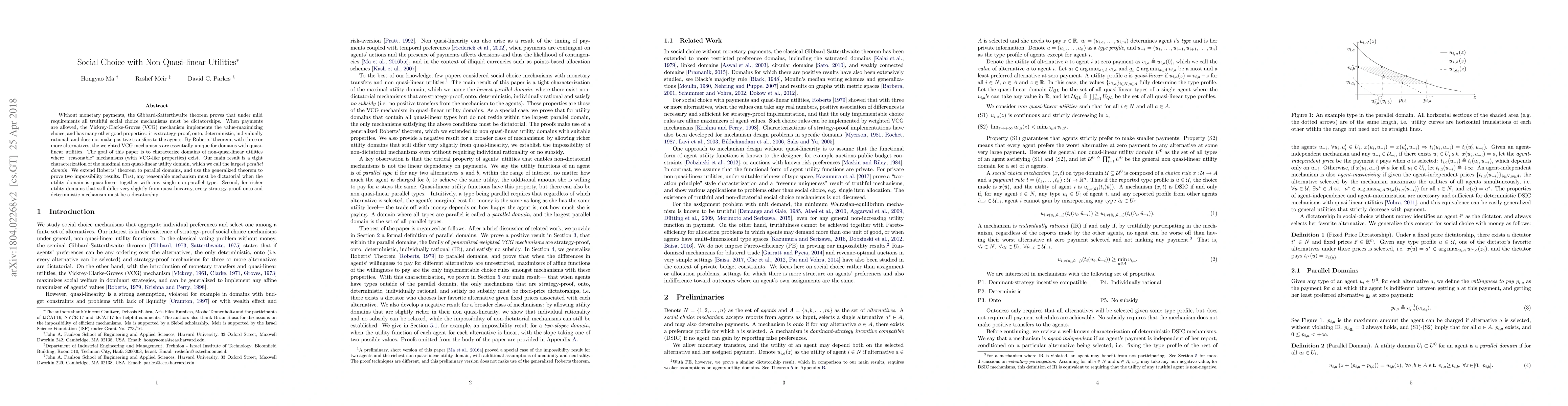This paper explores social choice mechanisms under non-quasi-linear utilities, proving that truthful mechanisms without payments are dictatorial. It characterizes the largest parallel domain where "reasonable" mechanisms with VCG-like properties exist, and demonstrates that any mechanism in quasi-linear domains with a single non-parallel type must be dictatorial.