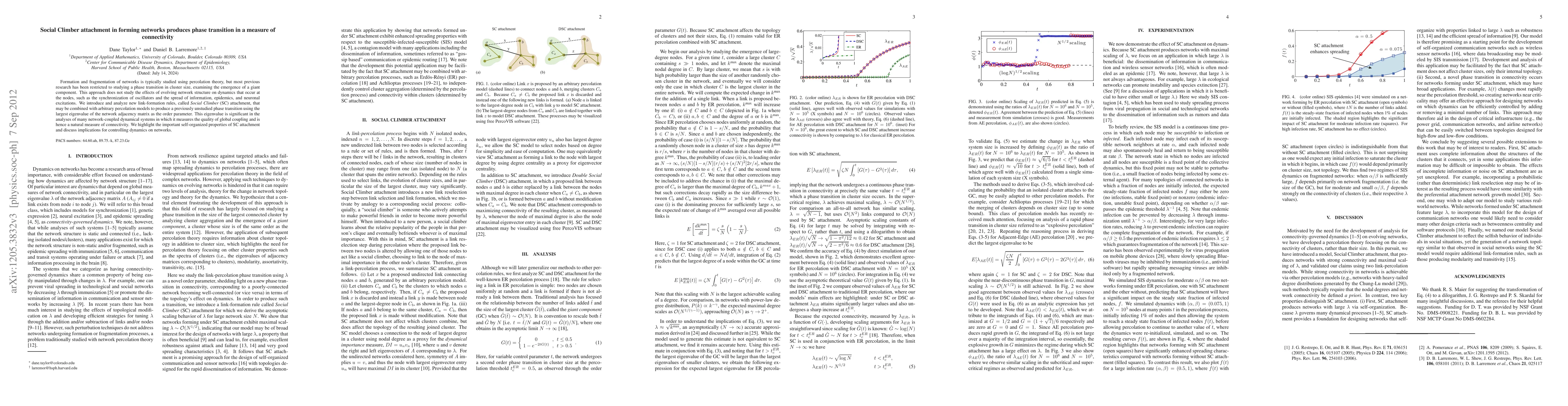 This paper introduces a new Social Climber attachment rule for network formation that induces a phase transition in connectivity, measured by the largest eigenvalue of the adjacency matrix. Unlike traditional percolation theory, this approach focuses on the dynamics at the nodes, offering implications for controlling phenomena like synchronization and information spread.