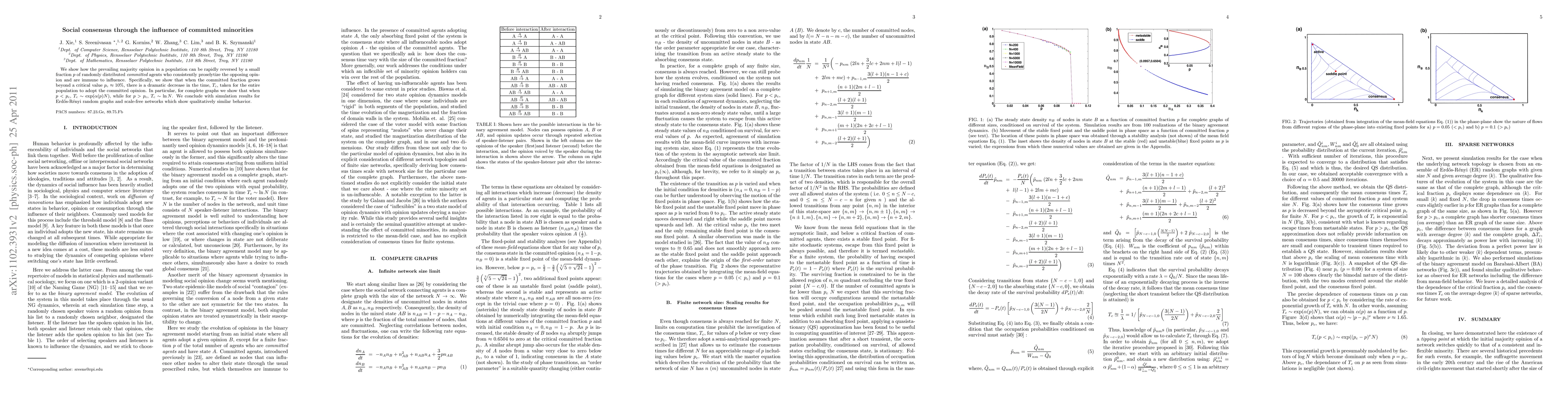 This paper demonstrates how a small committed minority can rapidly reverse majority opinions through consistent proselytizing, with the entire population adopting the minority view once the committed fraction exceeds a critical threshold of approximately 10%. Simulation results across different network types show similar dynamics, indicating the influential power of committed minorities in social consensus.