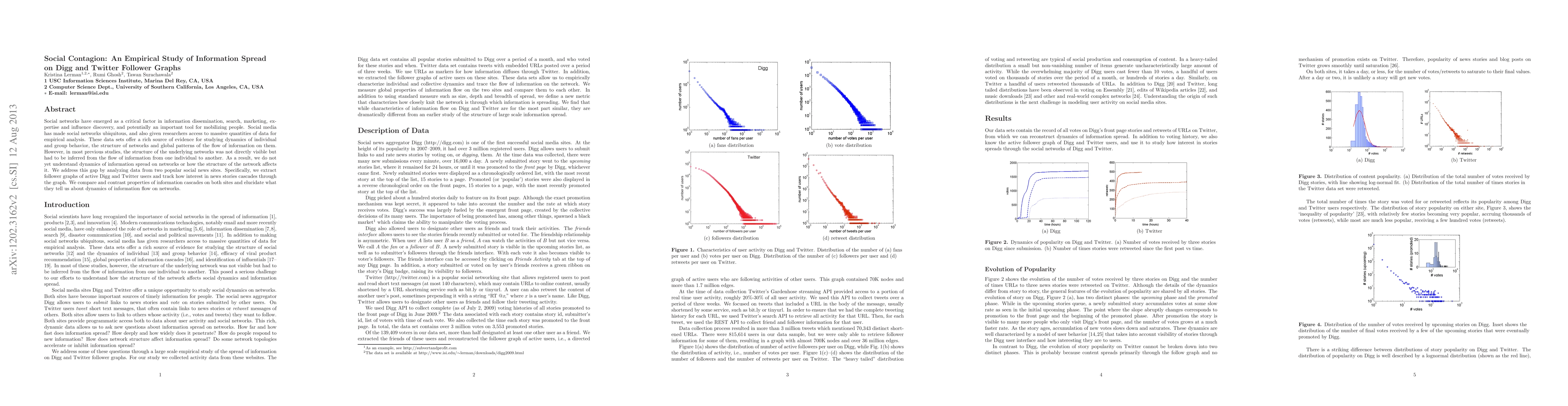 This study examines how information spreads through follower networks on Digg and Twitter, analyzing the structure and dynamics of information cascades to understand the influence of network topology on information dissemination. Findings reveal differences in information flow patterns between the two platforms, providing insights into the role of social networks in information spread.