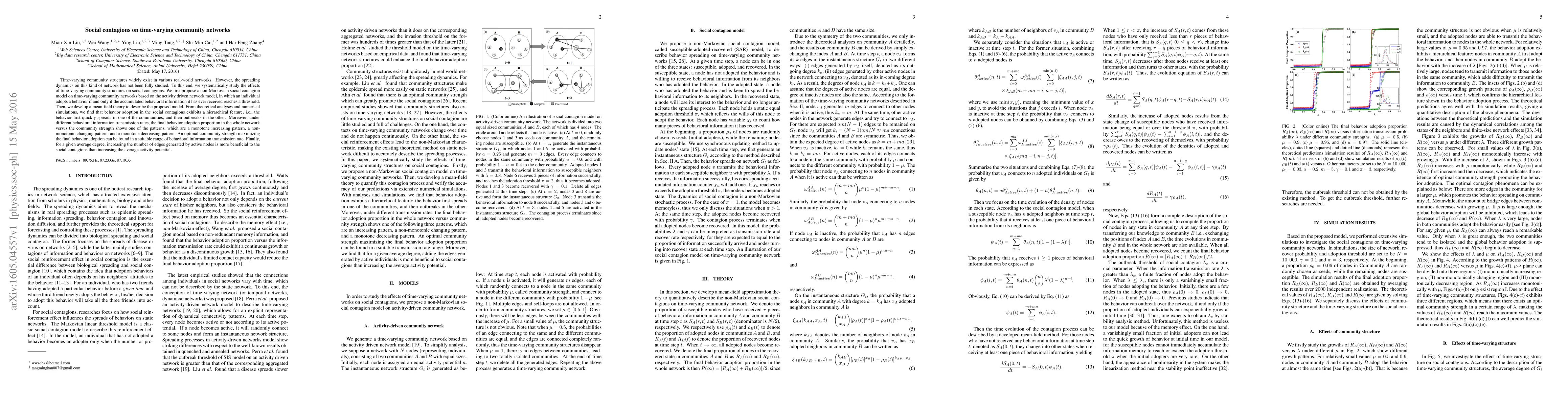 This paper investigates the dynamics of social contagions on time-varying community networks using a non-Markovian model and mean-field theory. It finds that behavior adoption spreads hierarchically within communities and identifies optimal community strength for maximizing adoption under varying transmission rates.